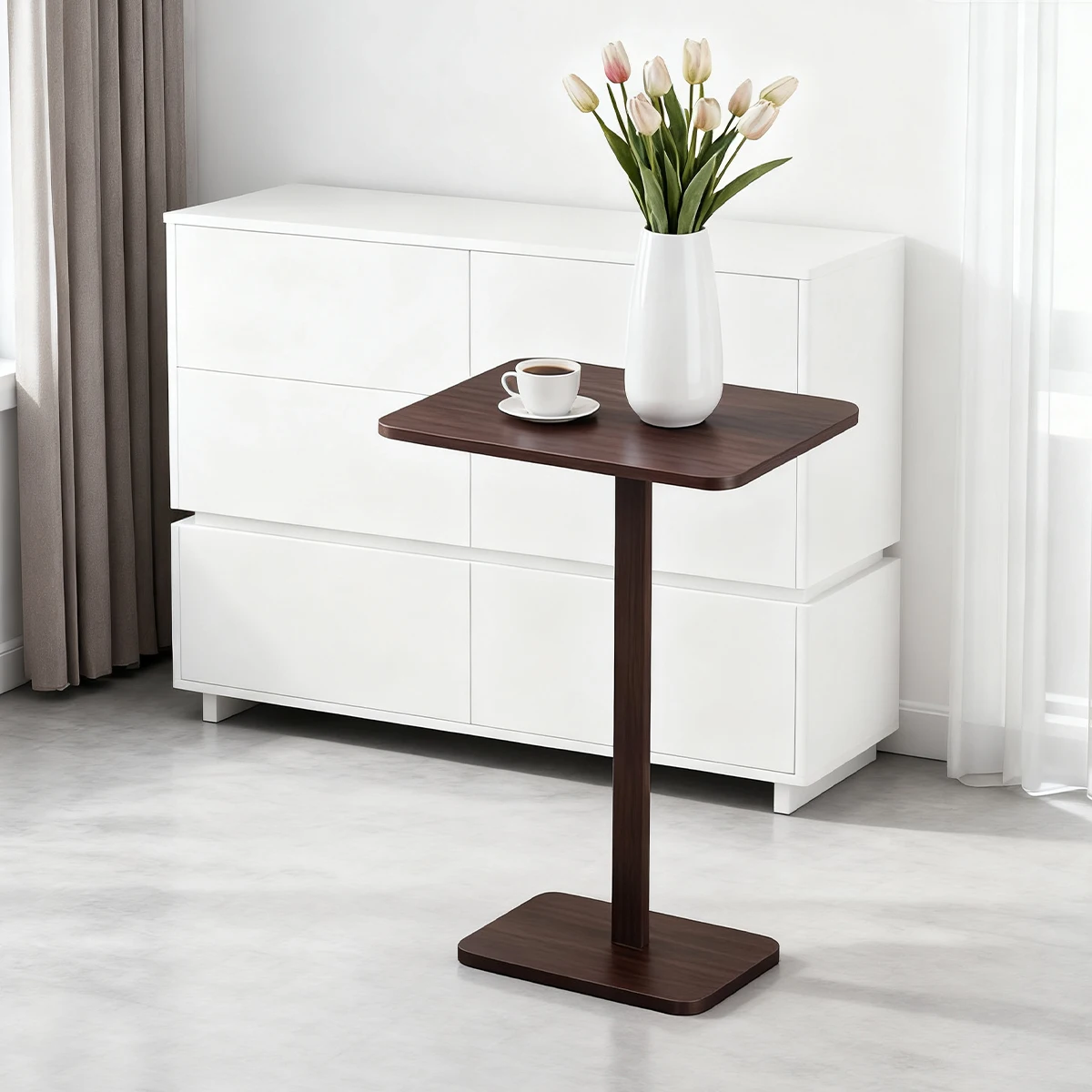 aliexpress , ali , shop , ali shop , online , store , online shop , online store , buy , sell , Minimalist C-Shaped End Table,Lightweight Sofa Bed Tray,Rustic Brown for Small Living Room TV Snack