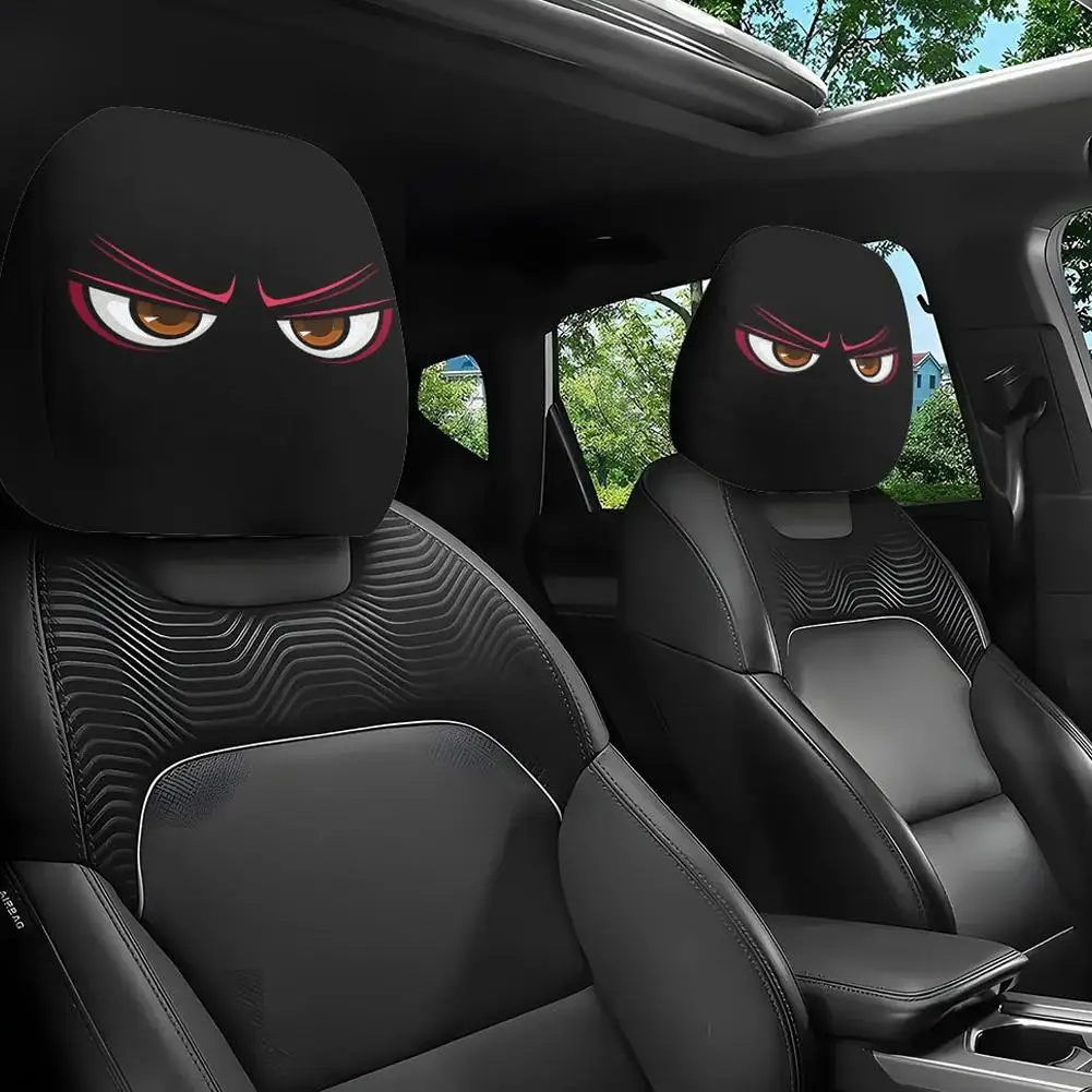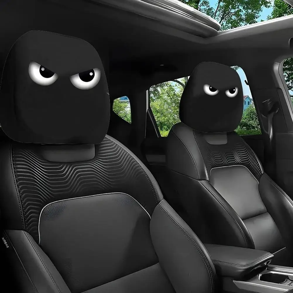 2PCS Cute Big-Eyed Cartoon Car Headrest Covers Universal Fit for Cars Fun Auto Seat Accessories for Holiday Gift