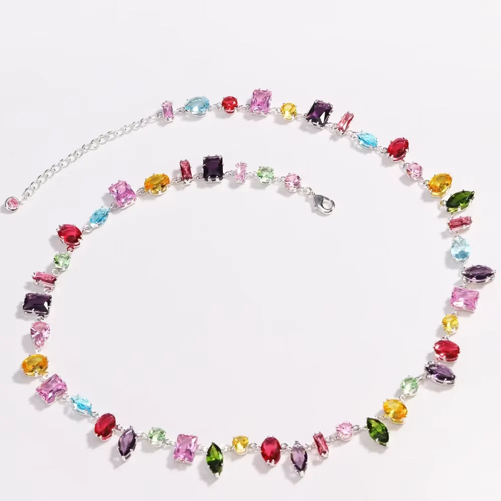 Luxury Colourful Crystal Zircon Necklace for Women Fashion Party Jewelry Accessory Ladies Elegant Zircon Jewelry