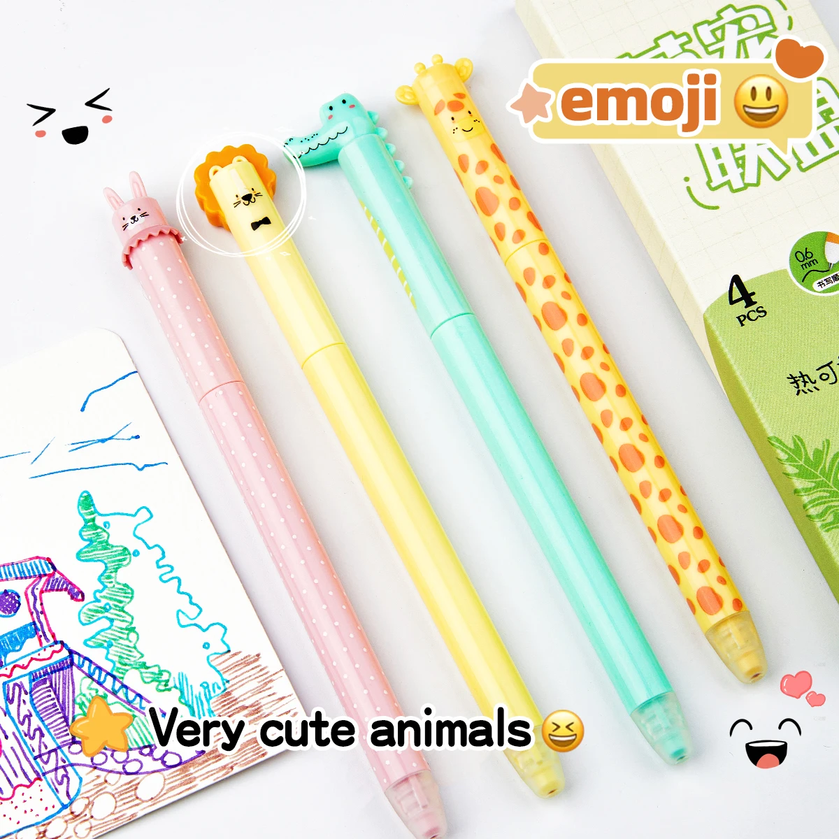 aliexpress , ali , shop , ali shop , online , store , online shop , online store , buy , sell , 4pcs Zoo Animal Theme Blue Ink Erasable Gel Pens 0.5mm, Smooth Writing for School, Office, Journals, Back-to-School Supplies