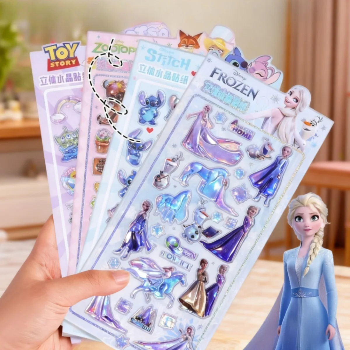 Cute Anime Disney Stitch Frozen 3d Relief Crystal Sticker Transparent Jelly Crystal Decorative Sticker Phone Case DIY