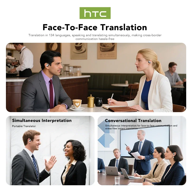 【HTC NE57】 Bluetooth V6.0 Earphones AI Translator Earbuds OWS Sport Wireless Headphones Comfort Earhooks Long Life with Mic