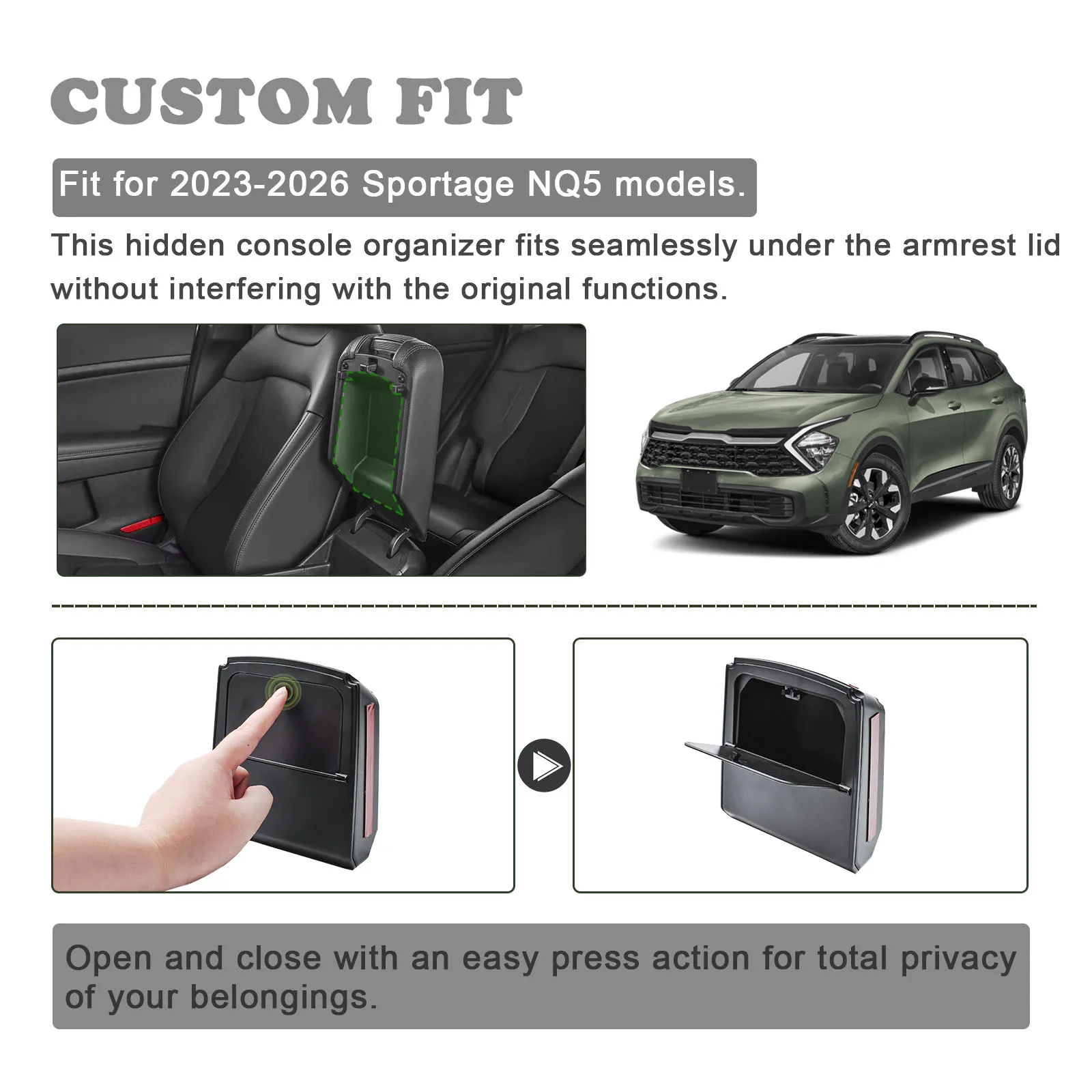 Armrest Hidden Box Tray for Kia Sportage 2025 2024 2023 NQ5 Center Console Secret Organizer Interior Storage Box Car Accessories