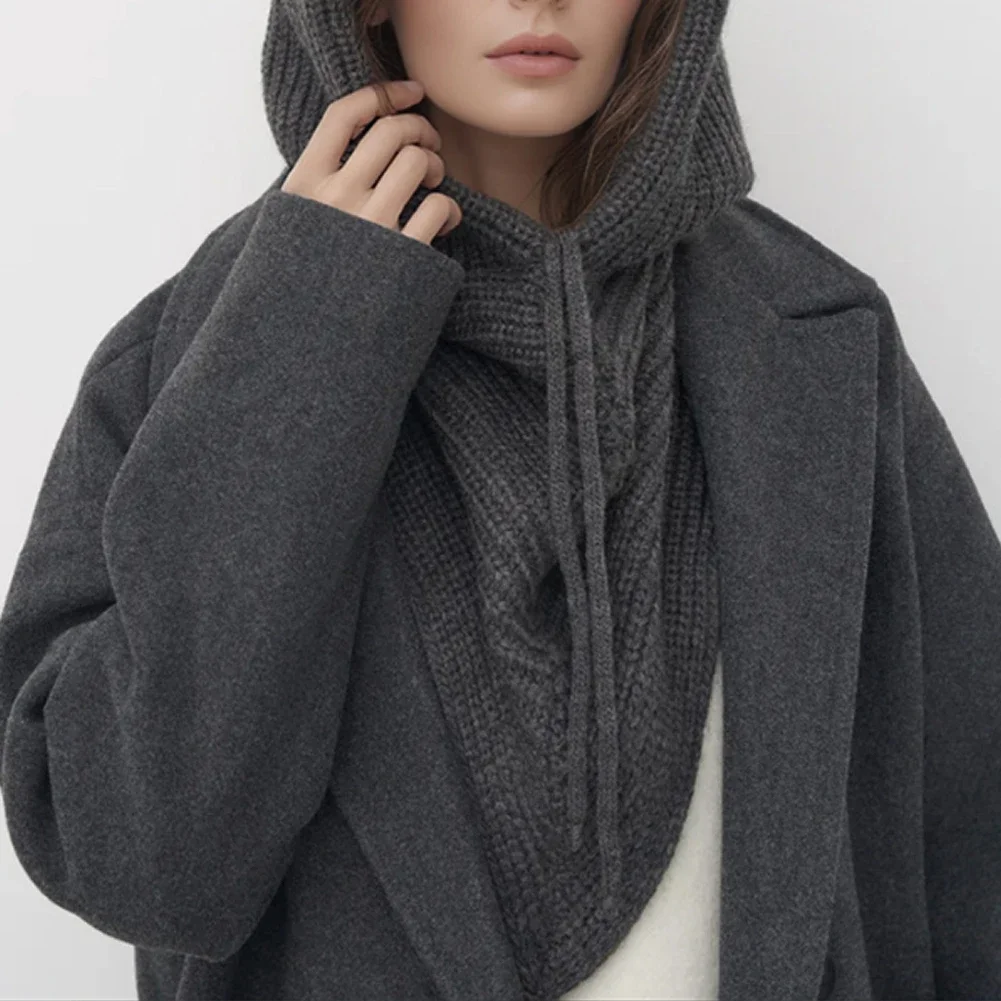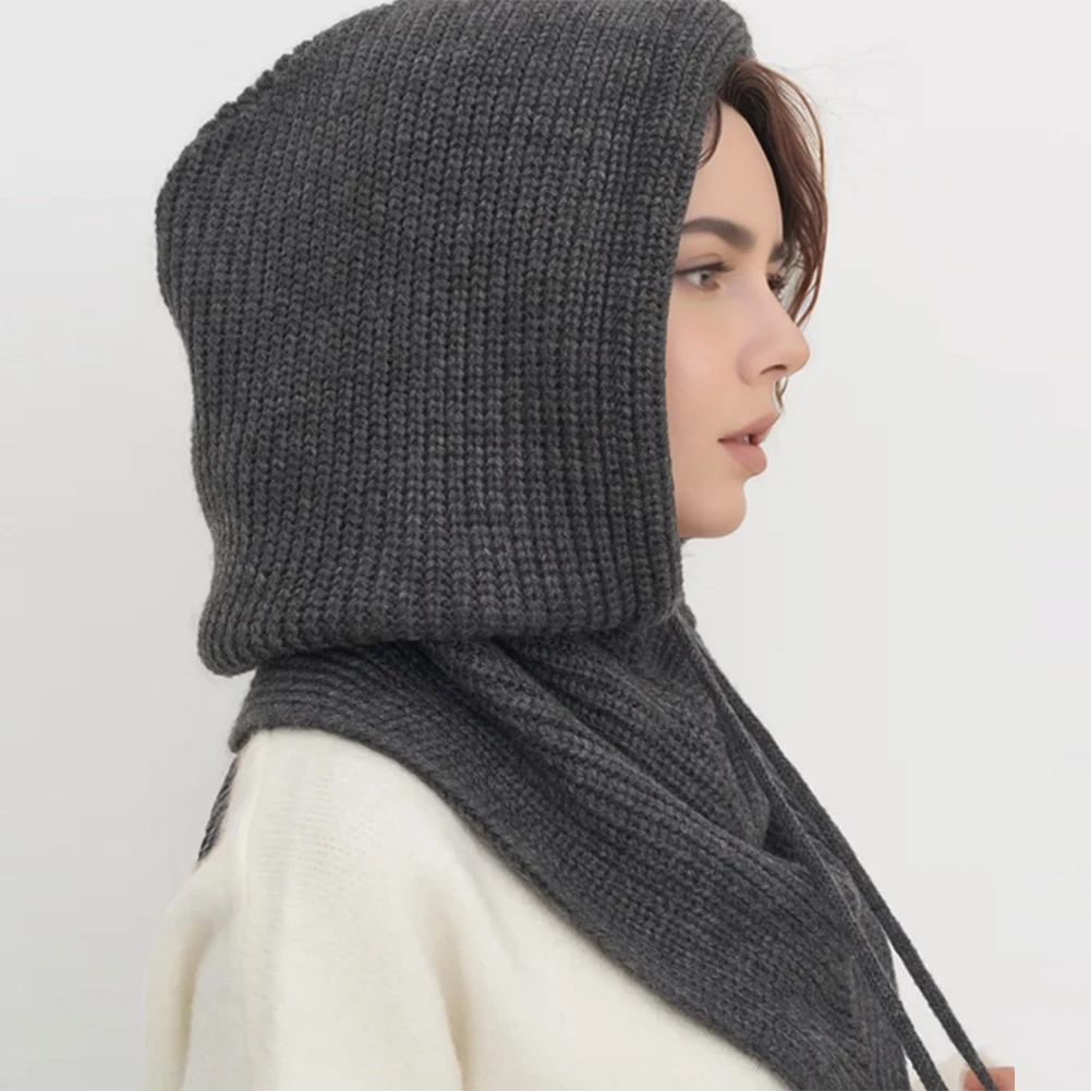 Winter Balaclava Hat Scarf for Women Warm Knitted Hooded Caps Outdoor Warm One-Piece Neck Collar Beanies Hats for Girls
