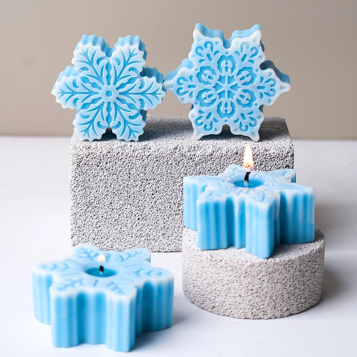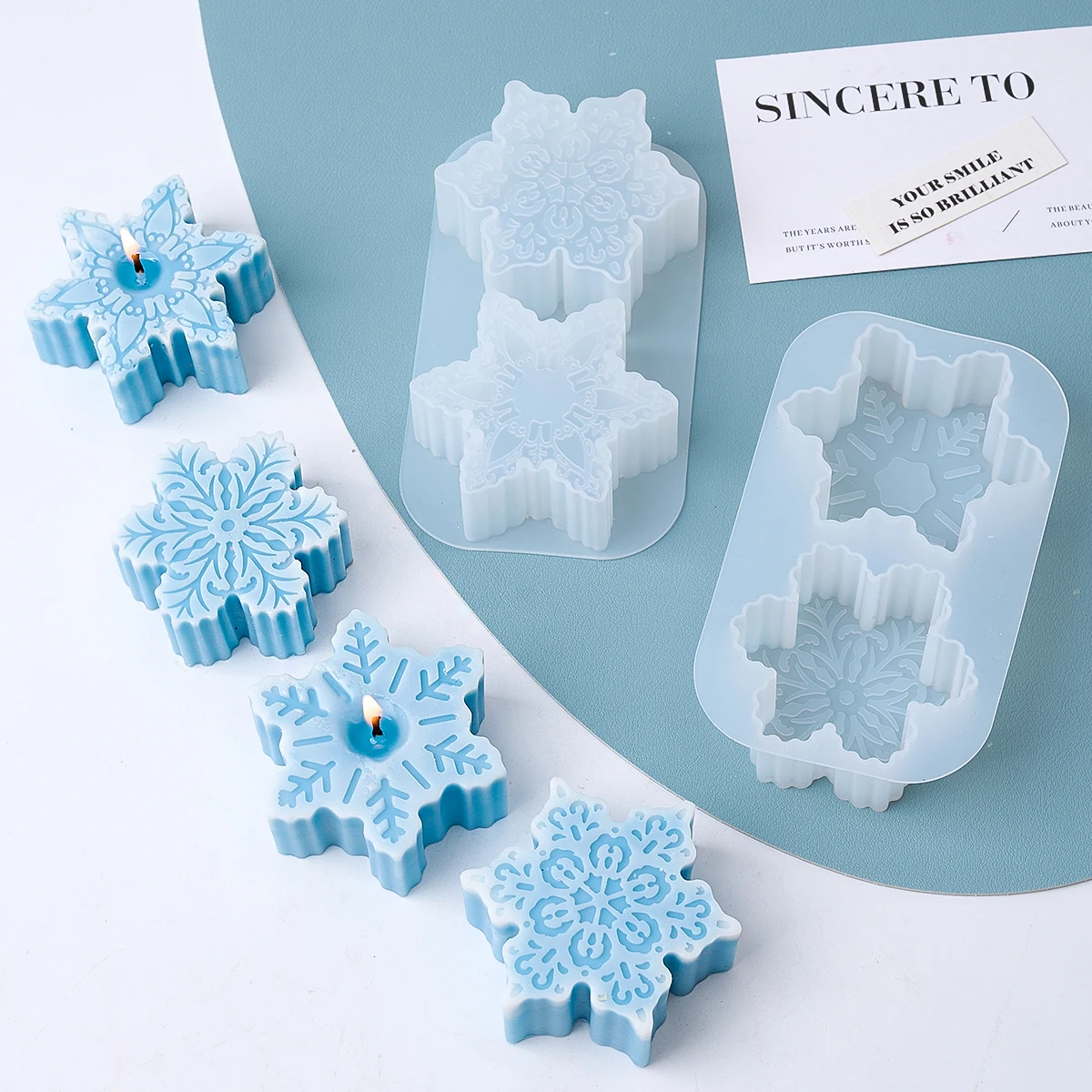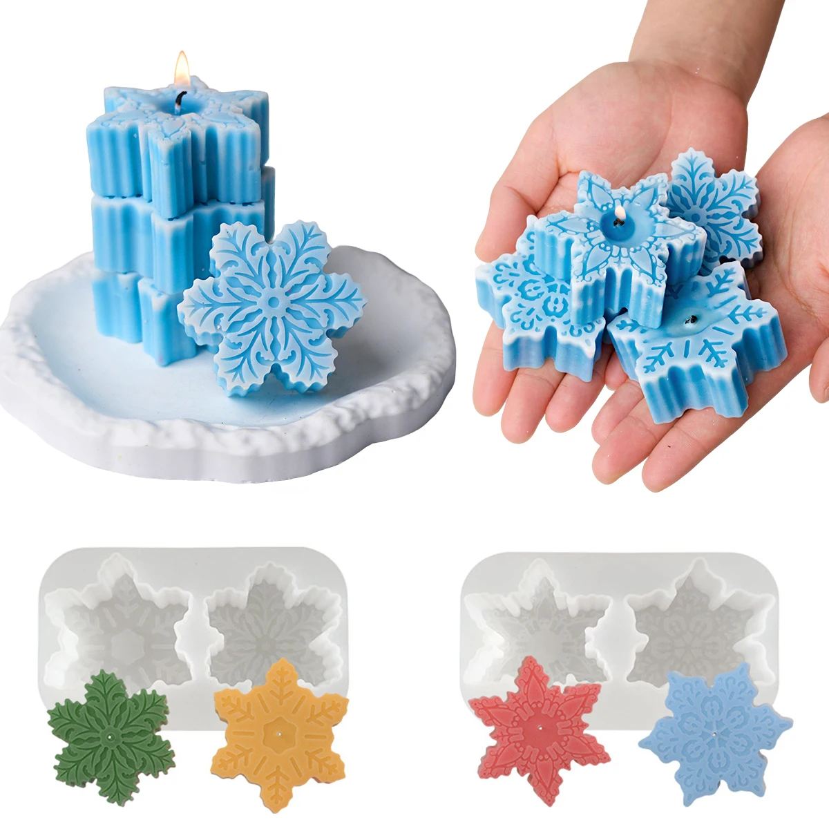 2 Holes 3D Snowflake Silicone Candle Mold Christmas Scented Candle Ornament Keychain Pendant Plaster Epoxy Resin Mold Craft Gift