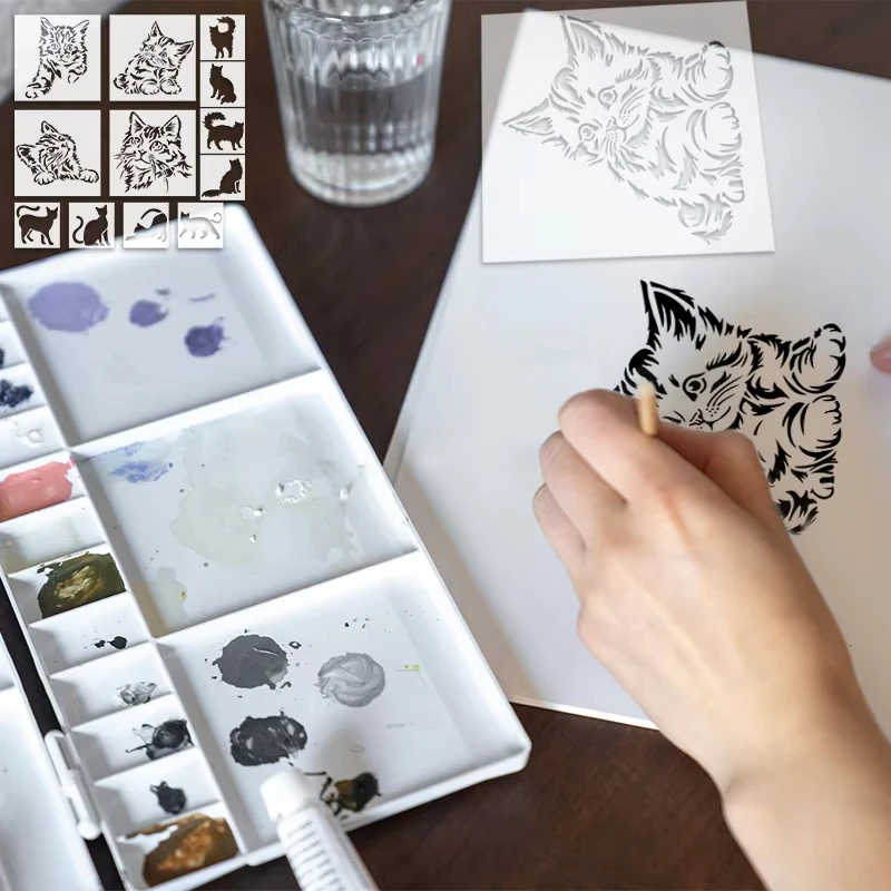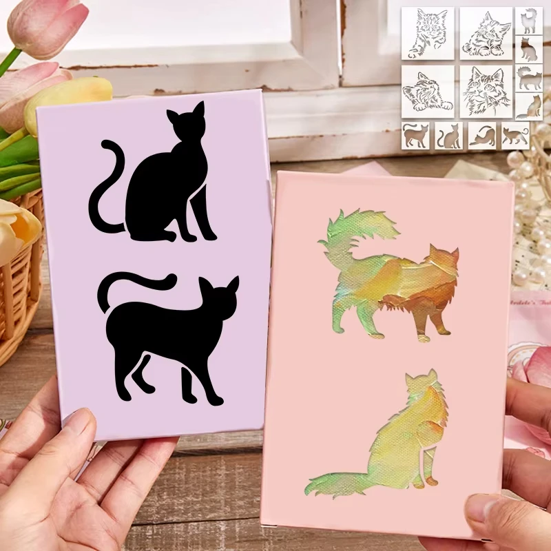 ALI shop - search results ... ... 12-Piece Set of Cute Cat Series Graffiti Stencils, Reusable DIY Cat Multi-Pattern Painting Hollow Decorative Stencils ::: 2021 ::: :::
