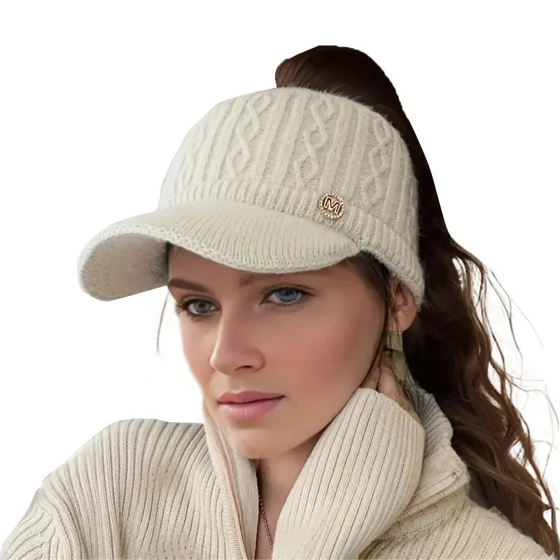 Autumn and Winter Woolen Duck Tongue Cap Teenage Fashion Versatile Hat Female Leakage Ponytail Outdoor Padded Warm Knitted Cap