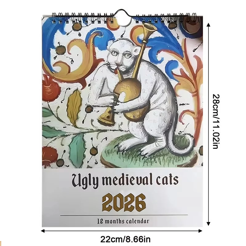 aliexpress , ali , shop , ali shop , online , store , online shop , online store , buy , sell , Medieval Cat Calendar 2026 - Strange Medieval Cat Wall Calendar, 12 Months Ugly Medieval Cat, January 2026 to December 2026