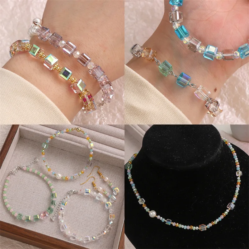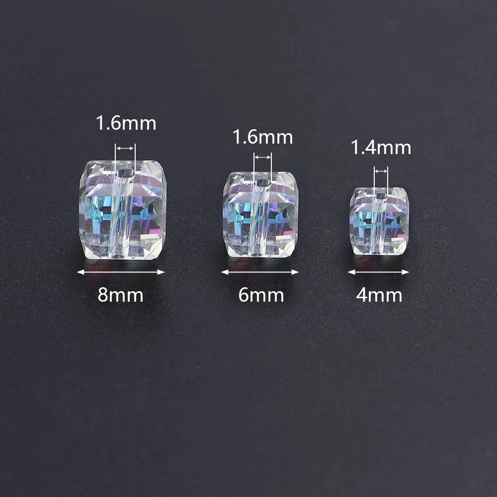 50pcs 4/6/8mm Square Faceted Glass Crystal Beads Loose Spacer Cube Beads for Jewelry Making DIY Bracelet Accessories Wholesale