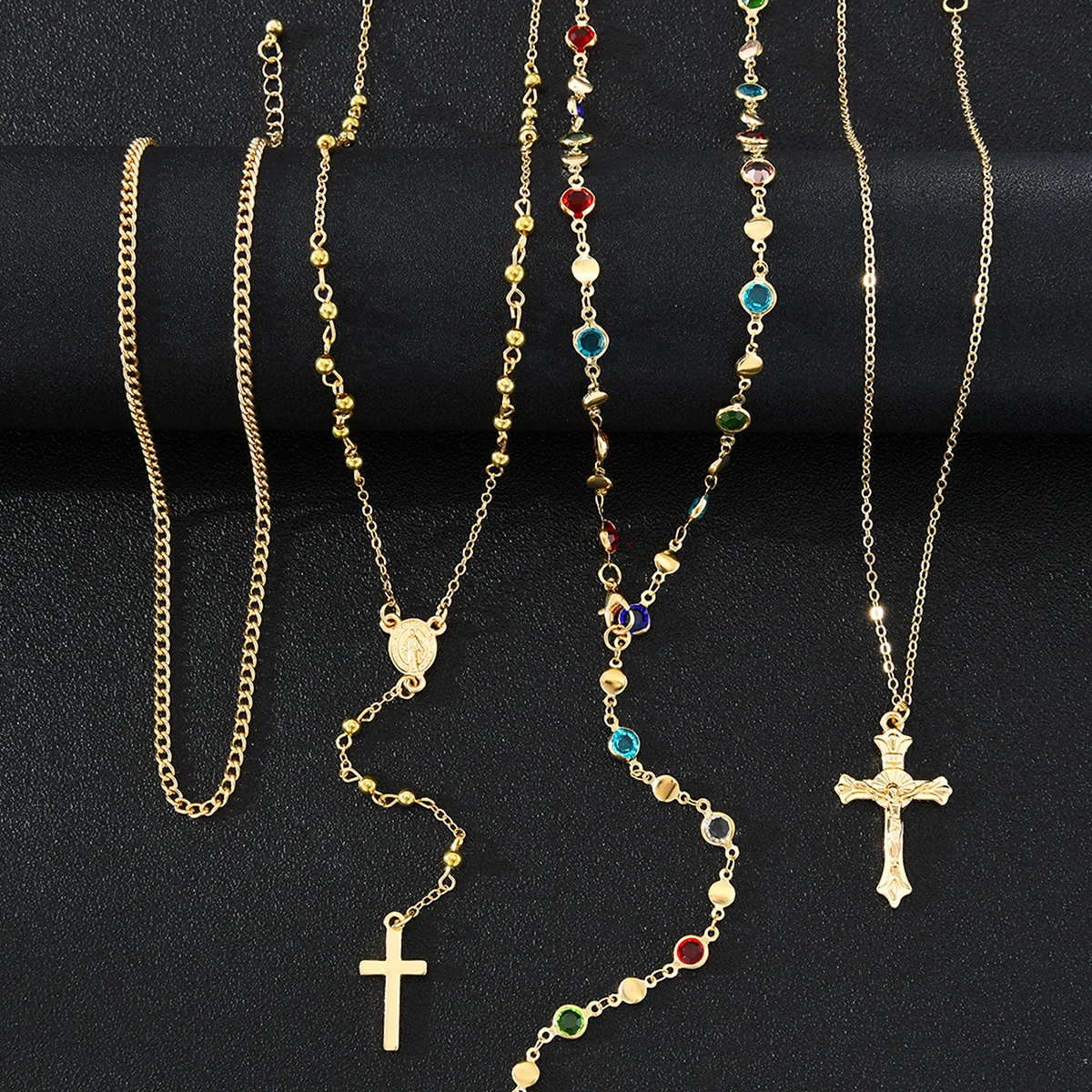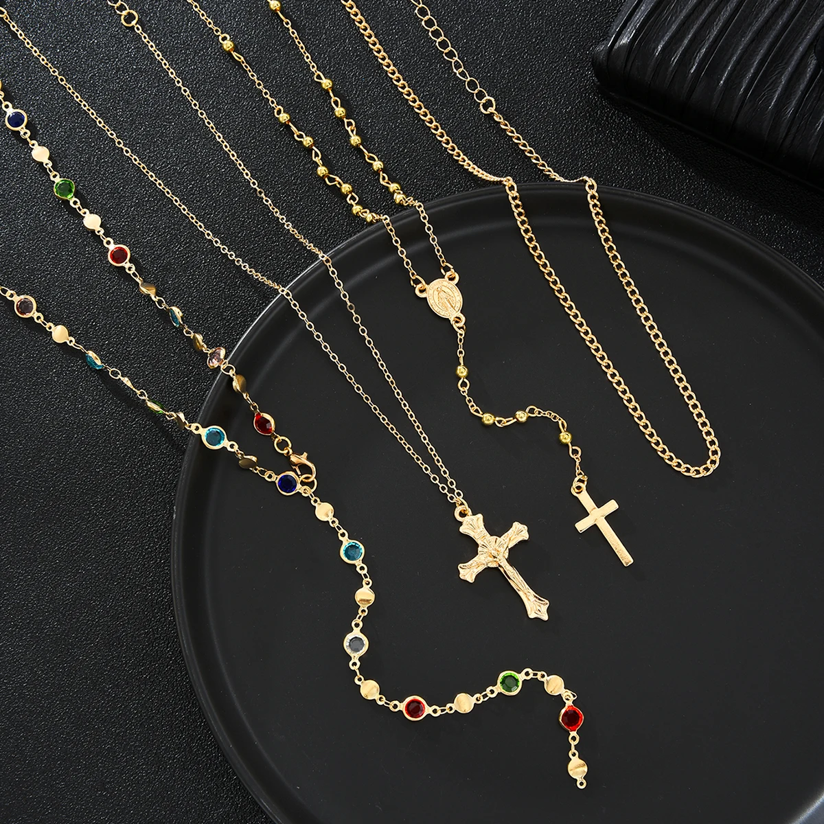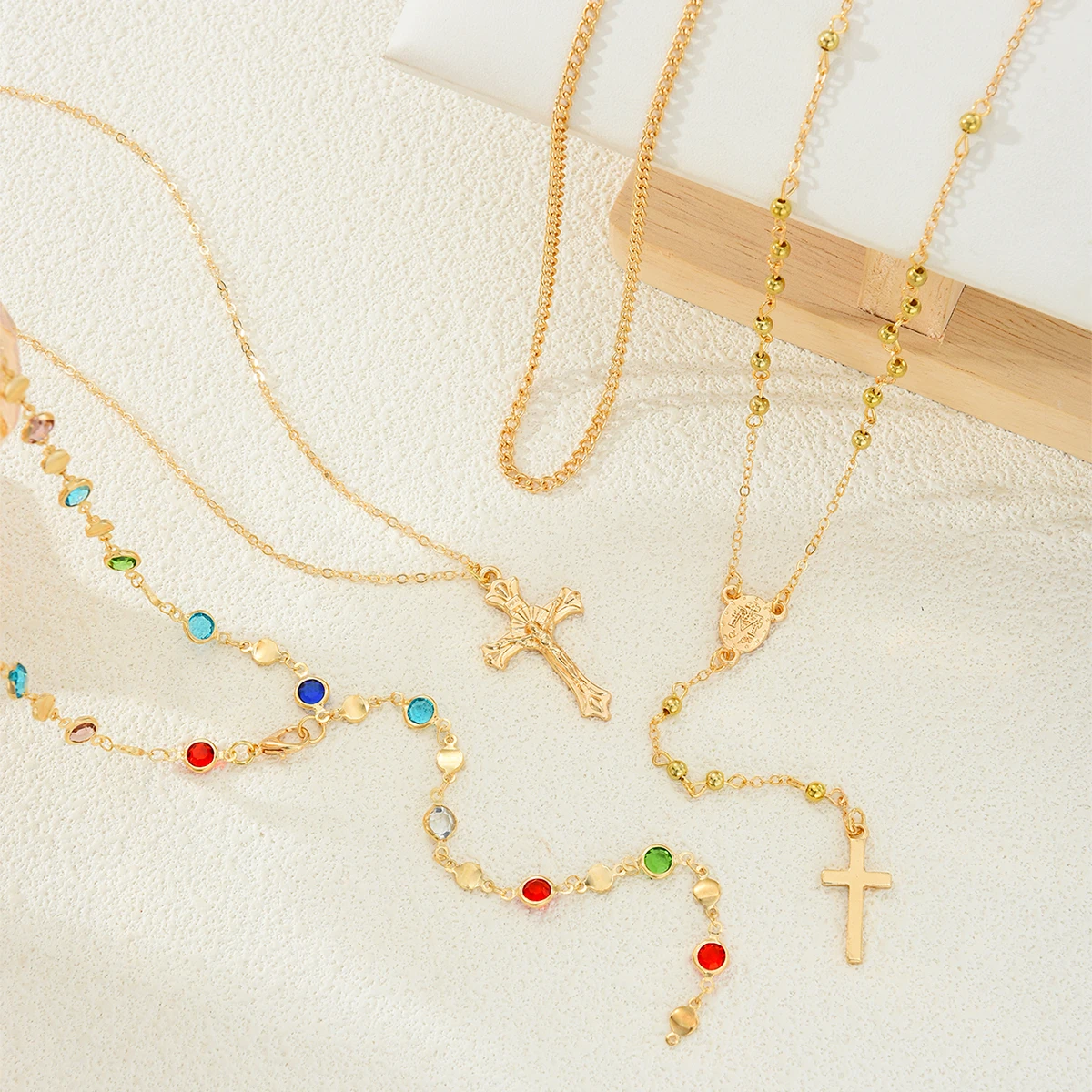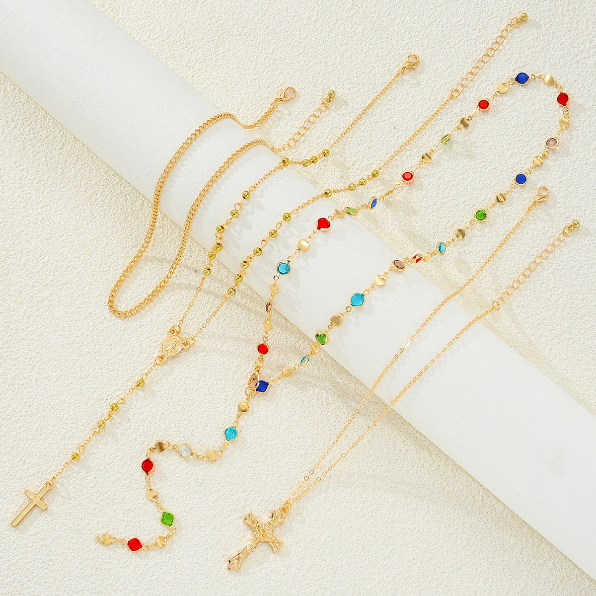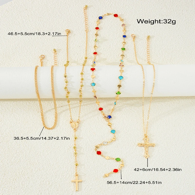 Luxury Rhinestone Cross Pendant Necklace Set for Women Vintage Simple Colorful Crystal Long Y-shaped Necklace Y2K Party Jewelry