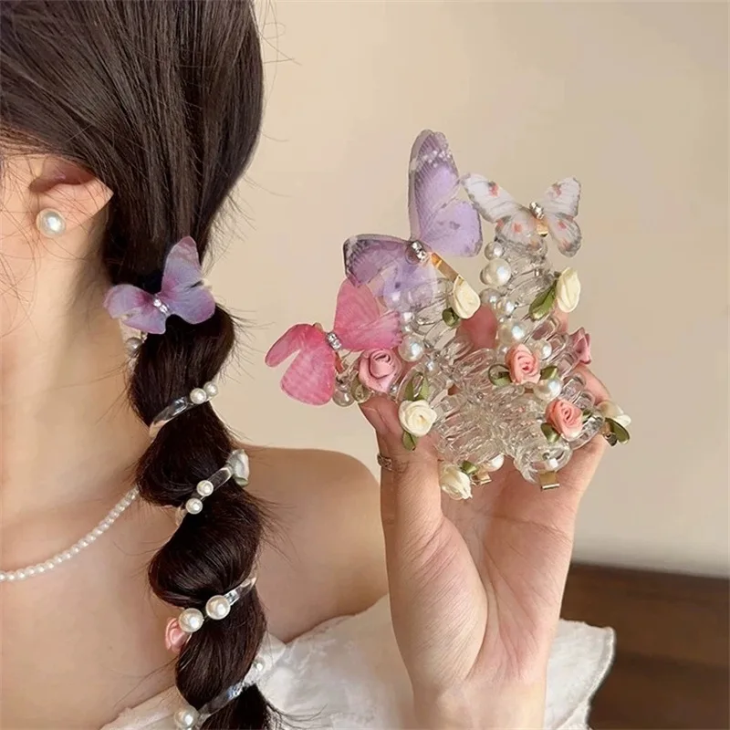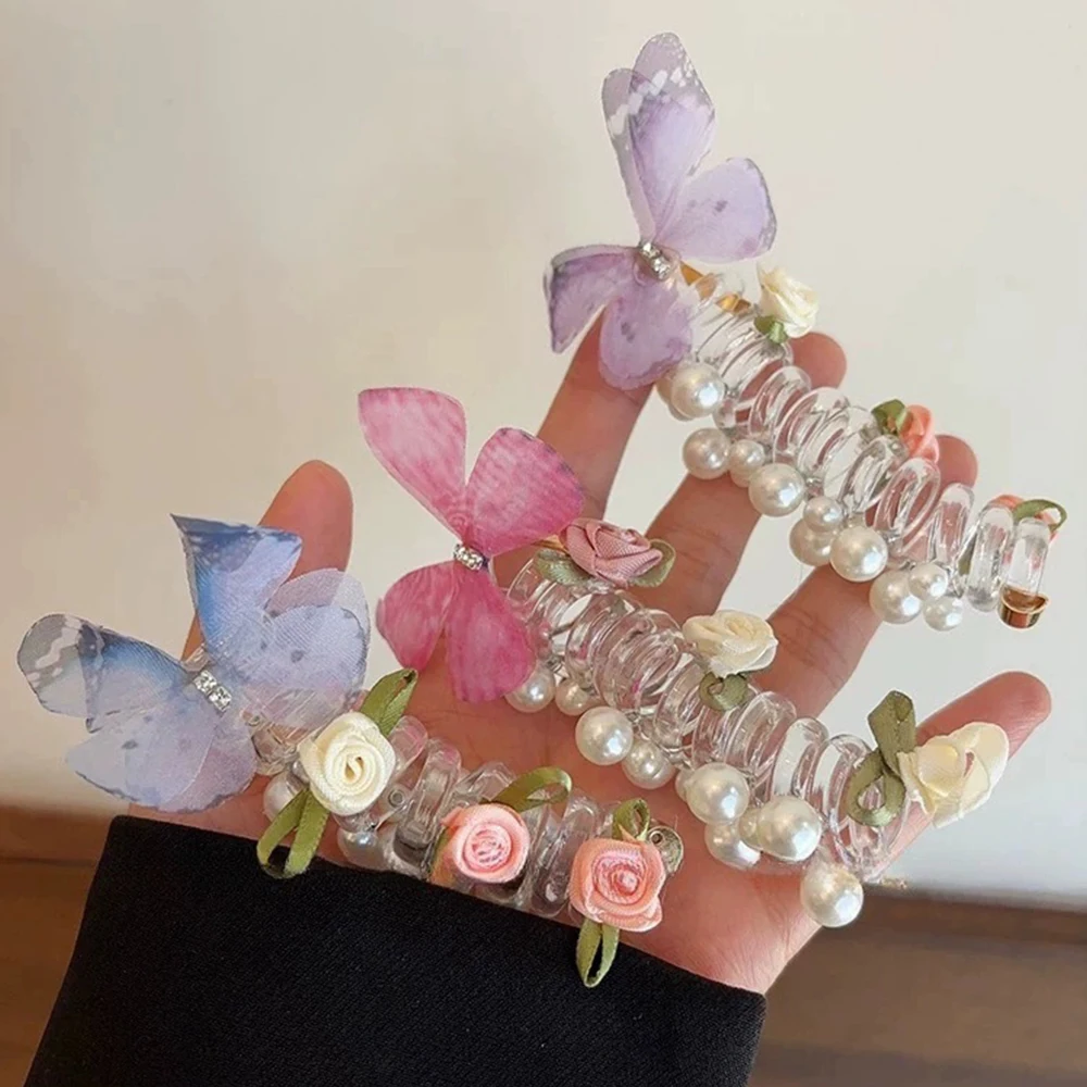 Sweet Butterfly Rose Phone Line Hair Hoop Children's Phone Line Braided Hair Rope Girls' Hair Tie Headwear