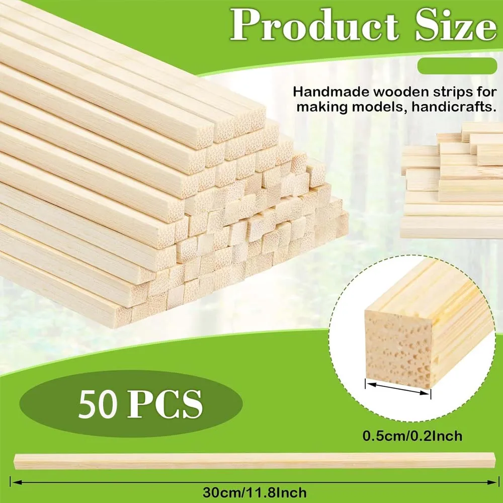20/50pcs Wood Sticks, Square Hardwood Dowels, Untreated Wooden Slats, Wooden Dowels, Wooden Sticks for Making Wood Crafts