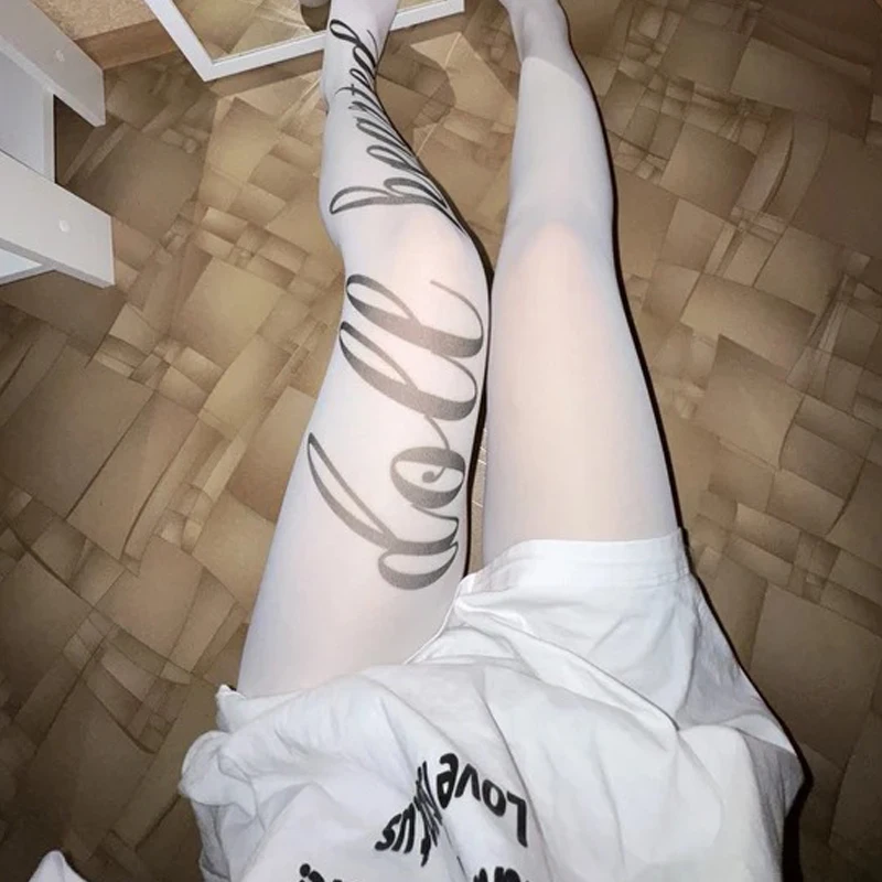 aliexpress , ali , shop , ali shop , online , store , online shop , online store , buy , sell , Y2K women's pantyhose stockings with letter print, simple and versatile for daily use, elastic and slightly transparent stocking