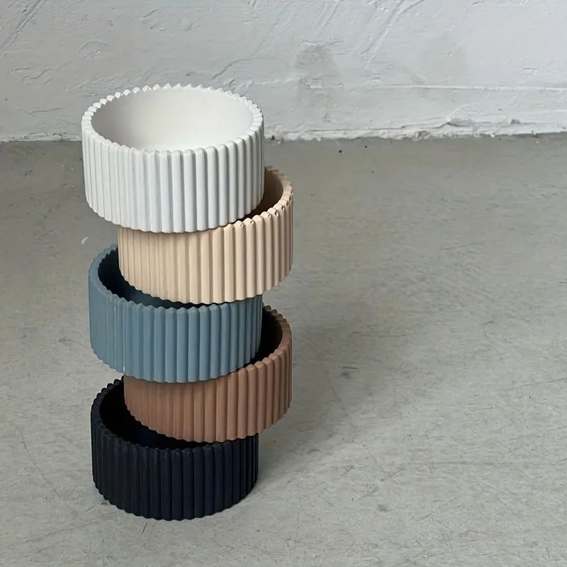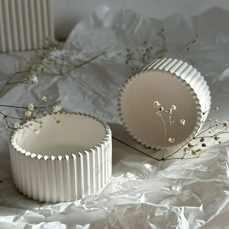 Striped Candle Base Silicone Molds DIY Gypsum Concrete Storage box Decorative Ornament Resin Mold Home Handicrafts Casting