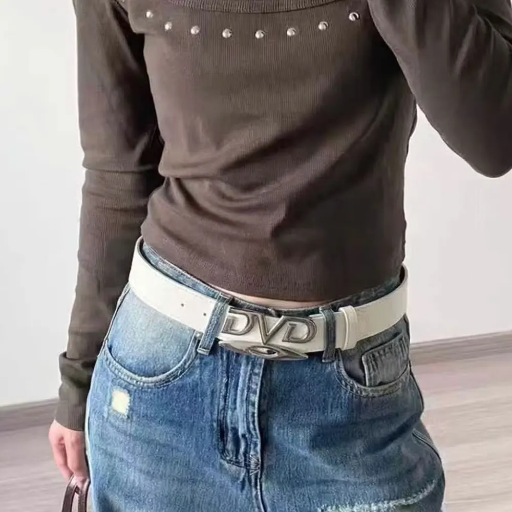 2026 Y2k Retro Dvd Buckle Belt Women Fashion Waistband, Trendy Niche Design, Versatile Accessory Perfect For Jeans, Statement