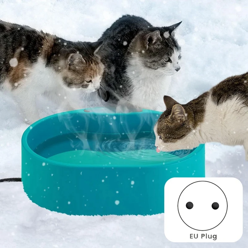 Heated Water Bowl for Dog Cat, Outdoor Warming Dog Bowl with Chew Beware Power Cord, Waterproof Heat Pet Bowl EU Plug/US Plug