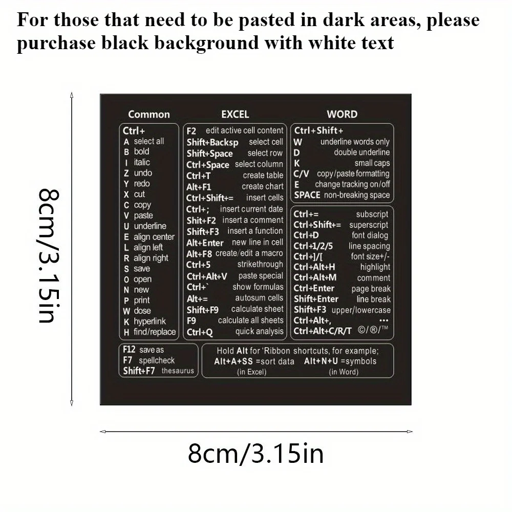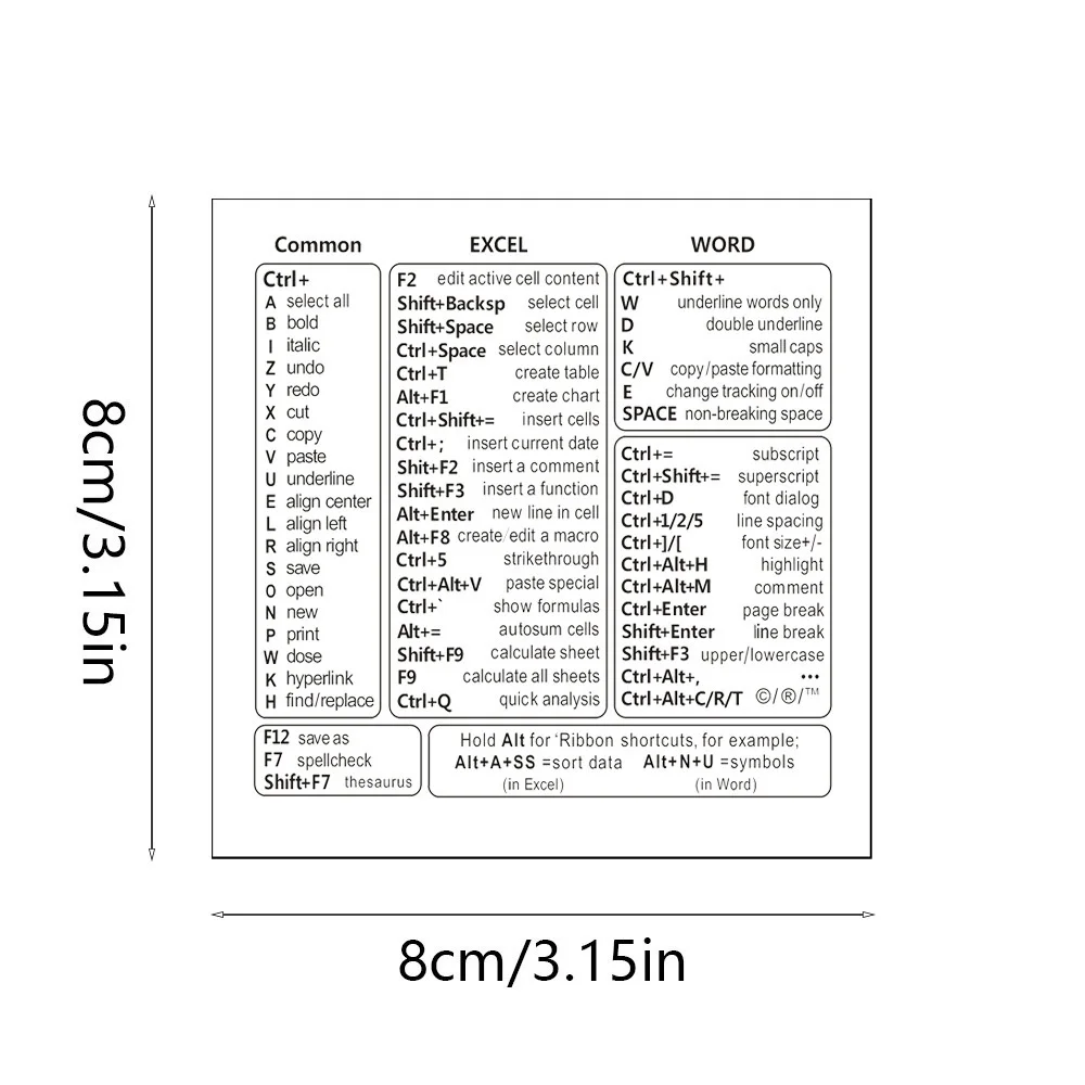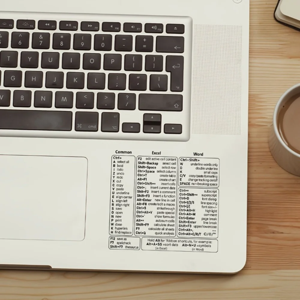 1 pc Vinyl Self-adhesive Keyboard Shortcut Stickers Quick Reference for Windows, Excel and Word, Office Software