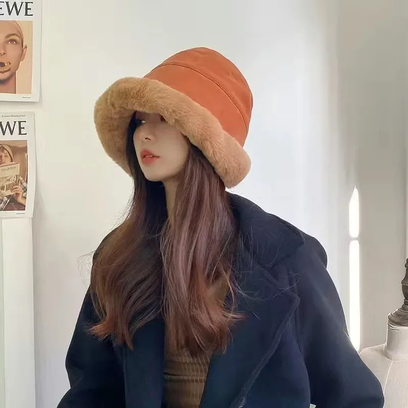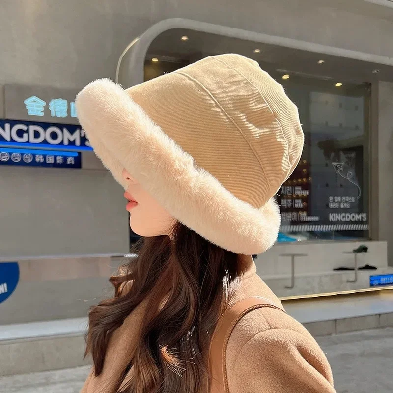 Adding Thick Plush Autumn/winter Hat To Keep Warm for Girl Cold Resistant Ear Protection Hat Curled Fisherman's Winter Hat