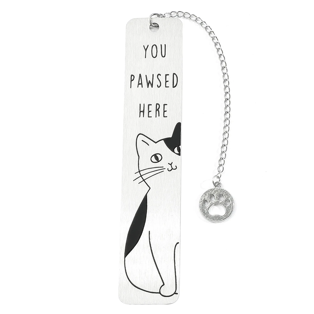 1pc Cat Waving Blessing Bookmark, Colorful Stainless Steel with Inspiring Text, Perfect Gift for Book & Cat Lovers