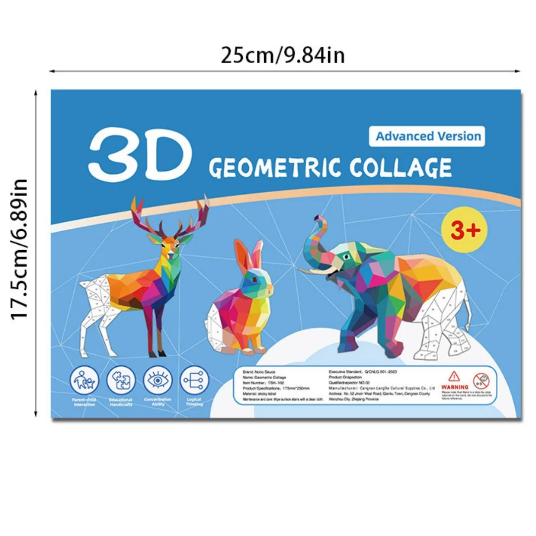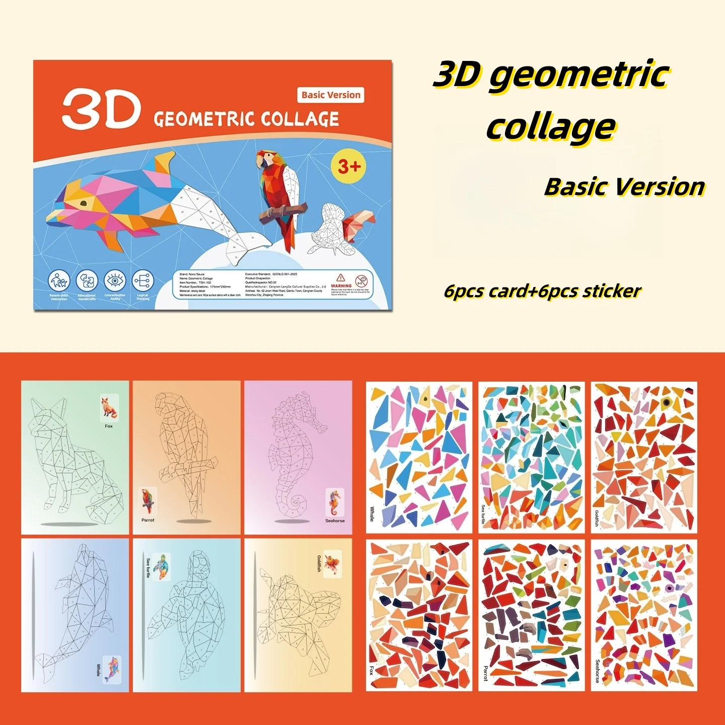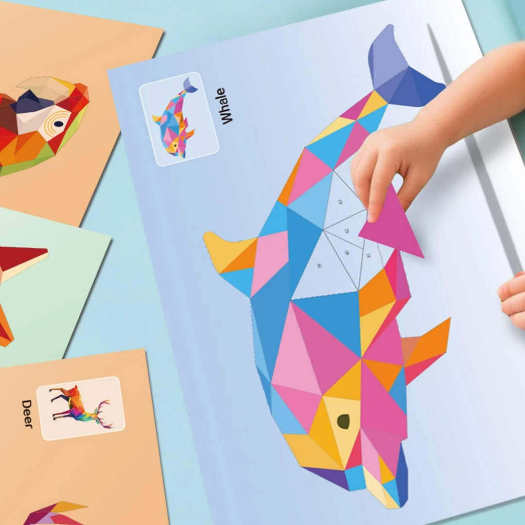3D Geometric Heteroideus Animal Puzzle Stickers Puzzle Stress Relieving Block Drawing DIY Stickers Basic /Advanced Version/2PCS