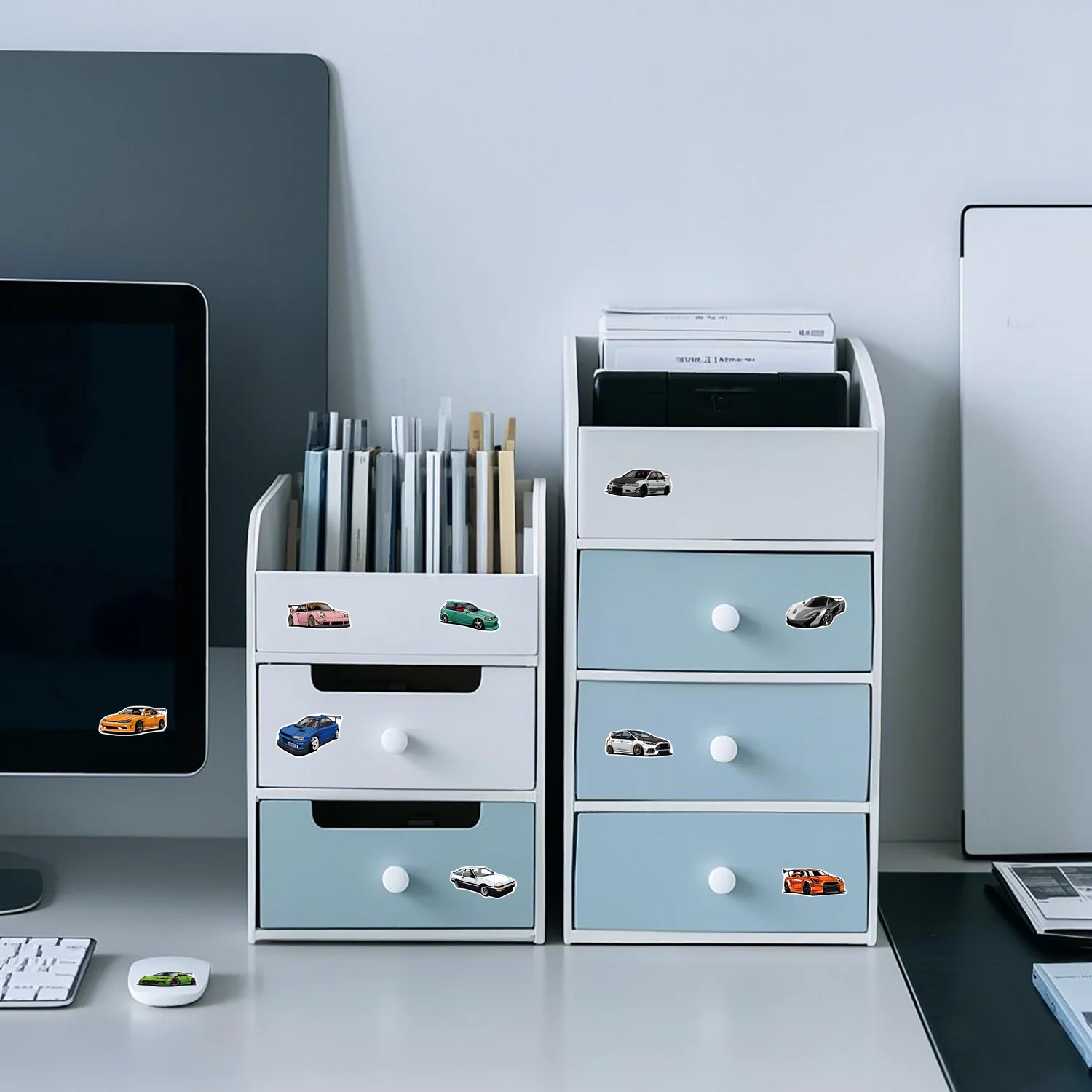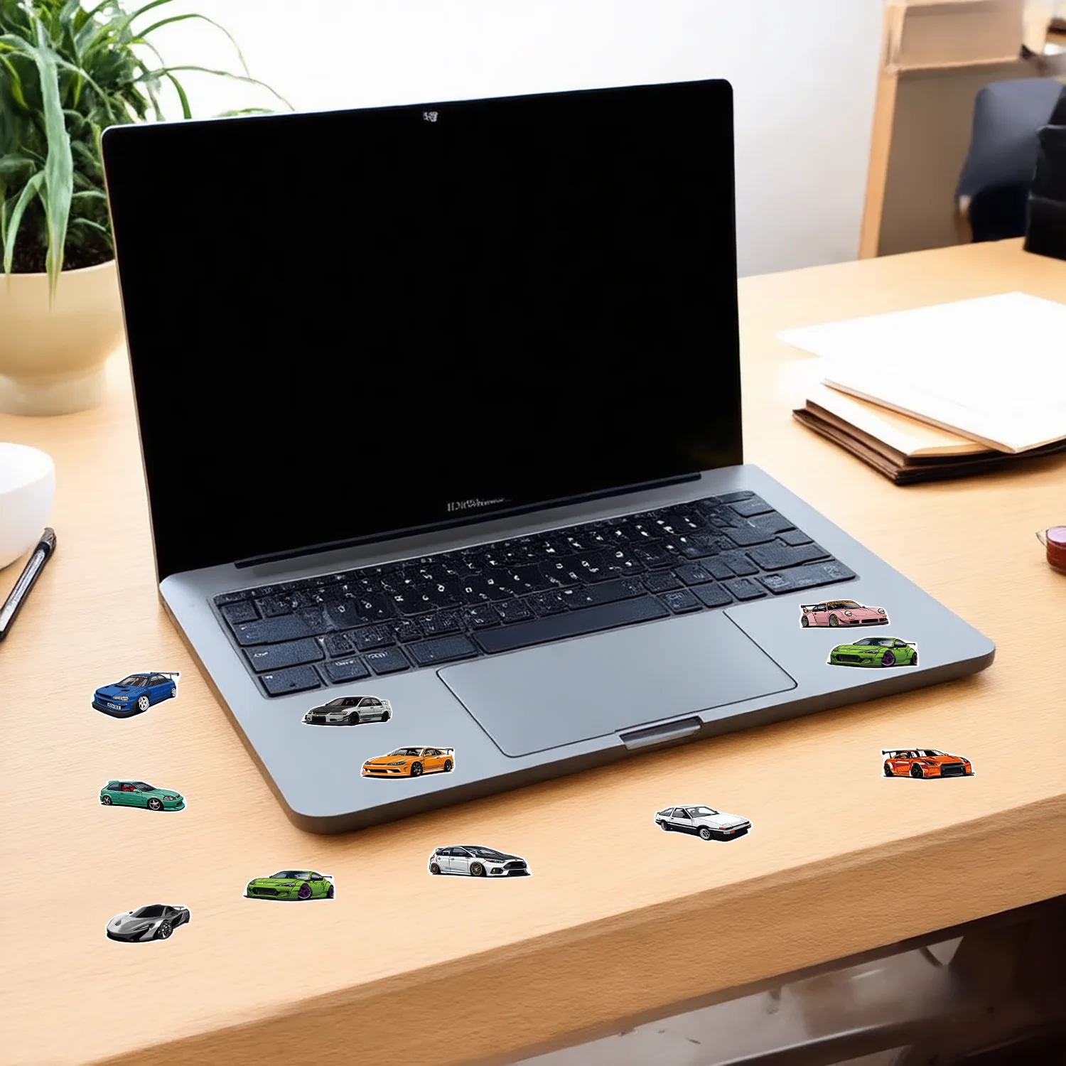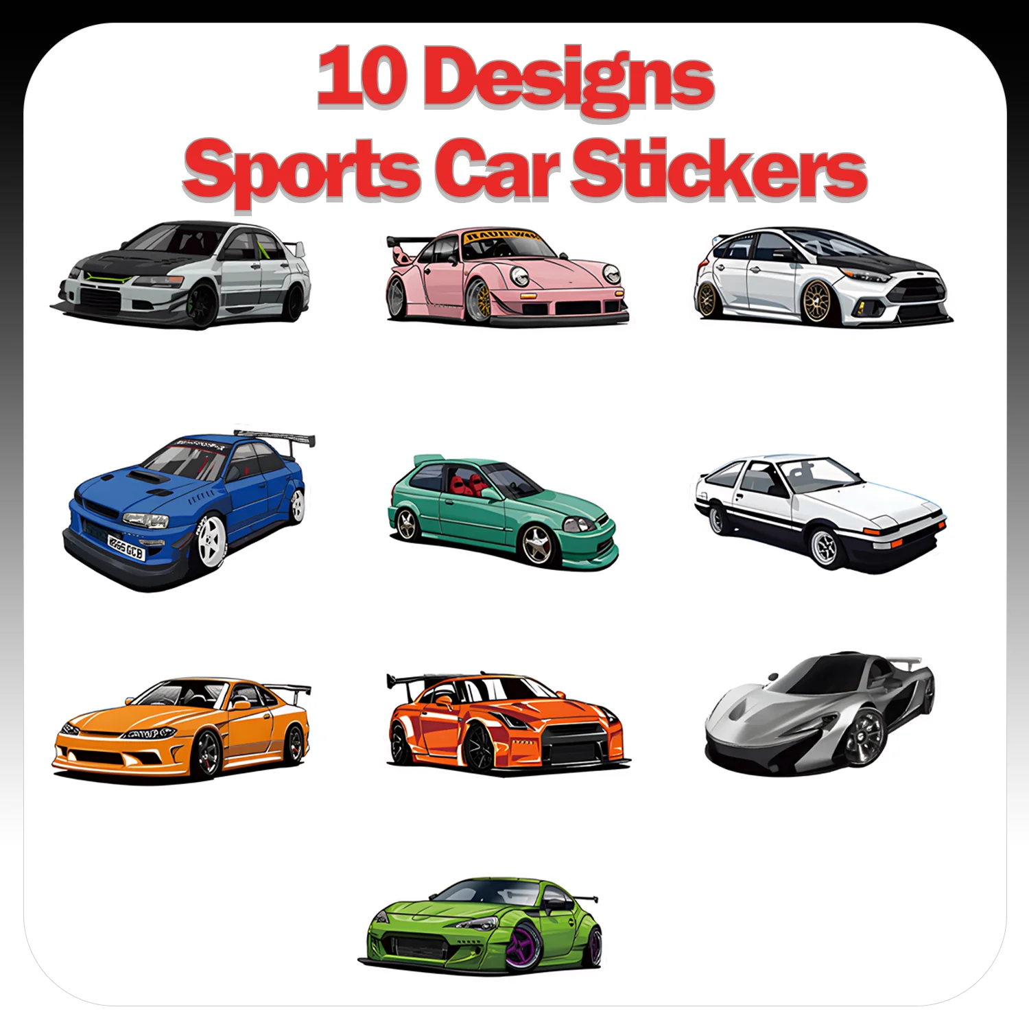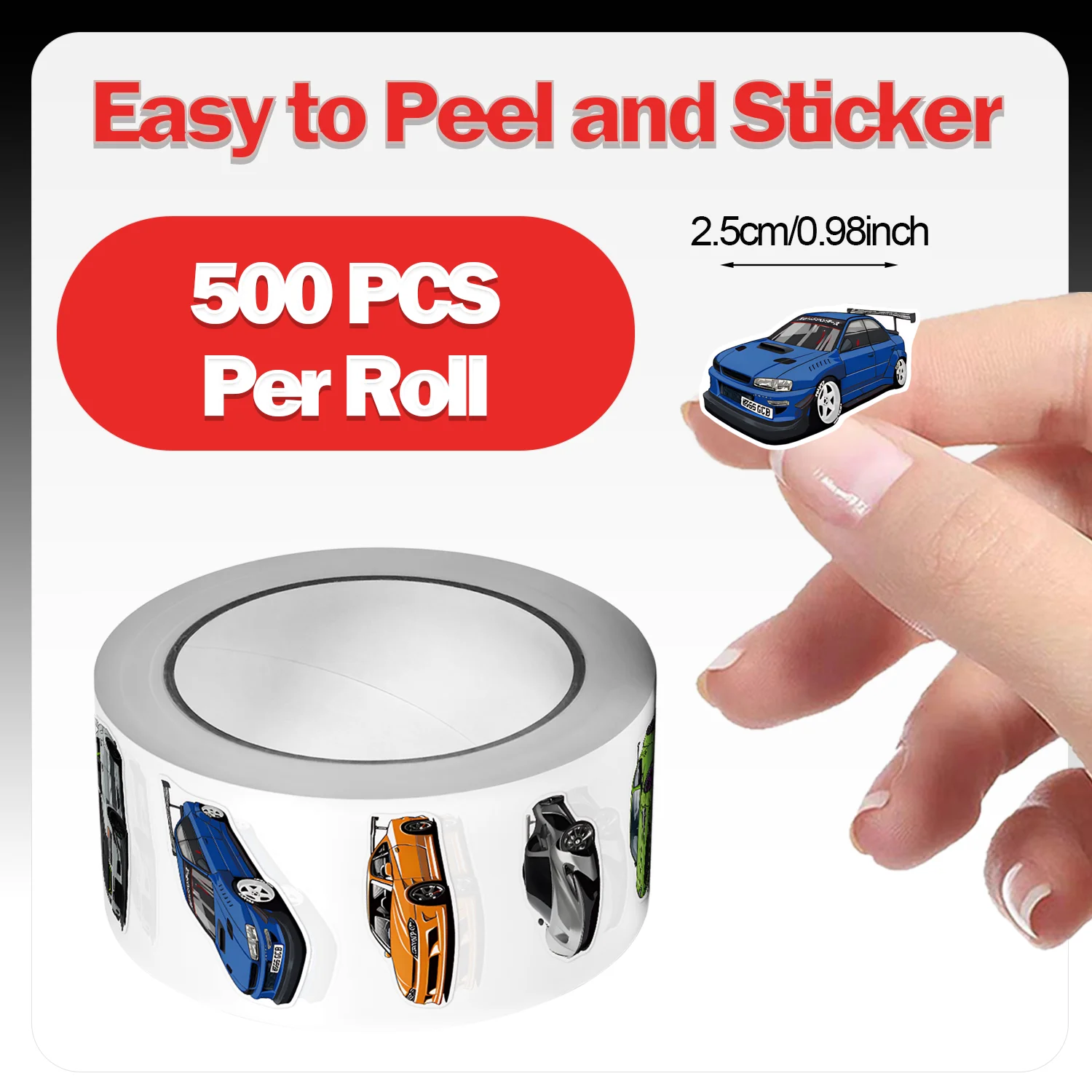 1Roll(500Pcs) Mini Sport Cars Stickers 2.5cm/1.0'' 10 Designs Decals Diy Adorn Gifts Packaging Home Decoration Sealing Labels