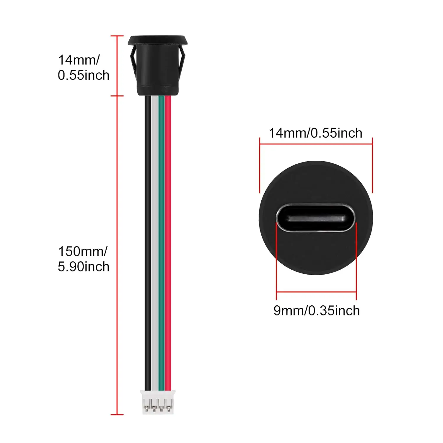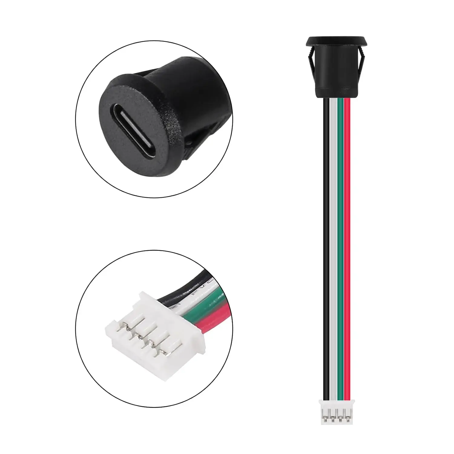 8pcs Type-C Female Chassis 4P Direct Crimp USB Female Chassis C Connector Jack Charging Port Waterproof with Card Buckle 3A High