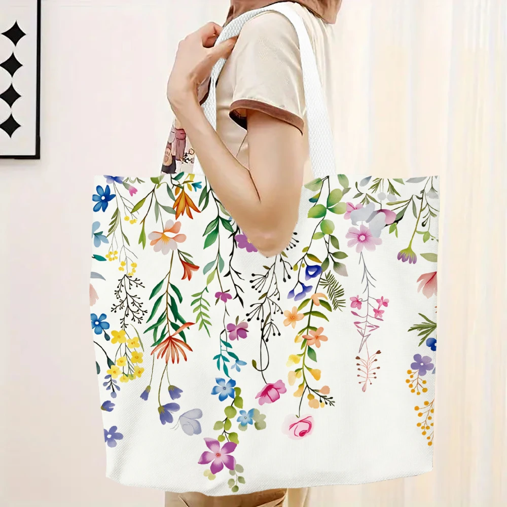 Flower Printed Tote Bag, Reusable Fashionable Backpack, Multifunctional Handbag, Printed Shopping Bag