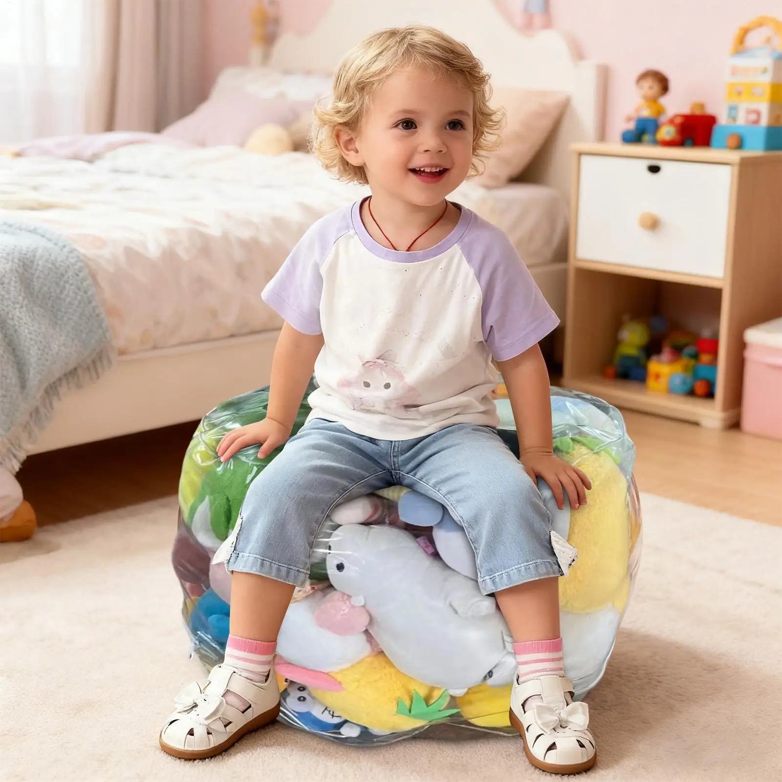Clear Animal Storage Chair Plush Bean Bag Seat with Waterproof Cover for Kids Bedroom Playroom Nursery Home Decor