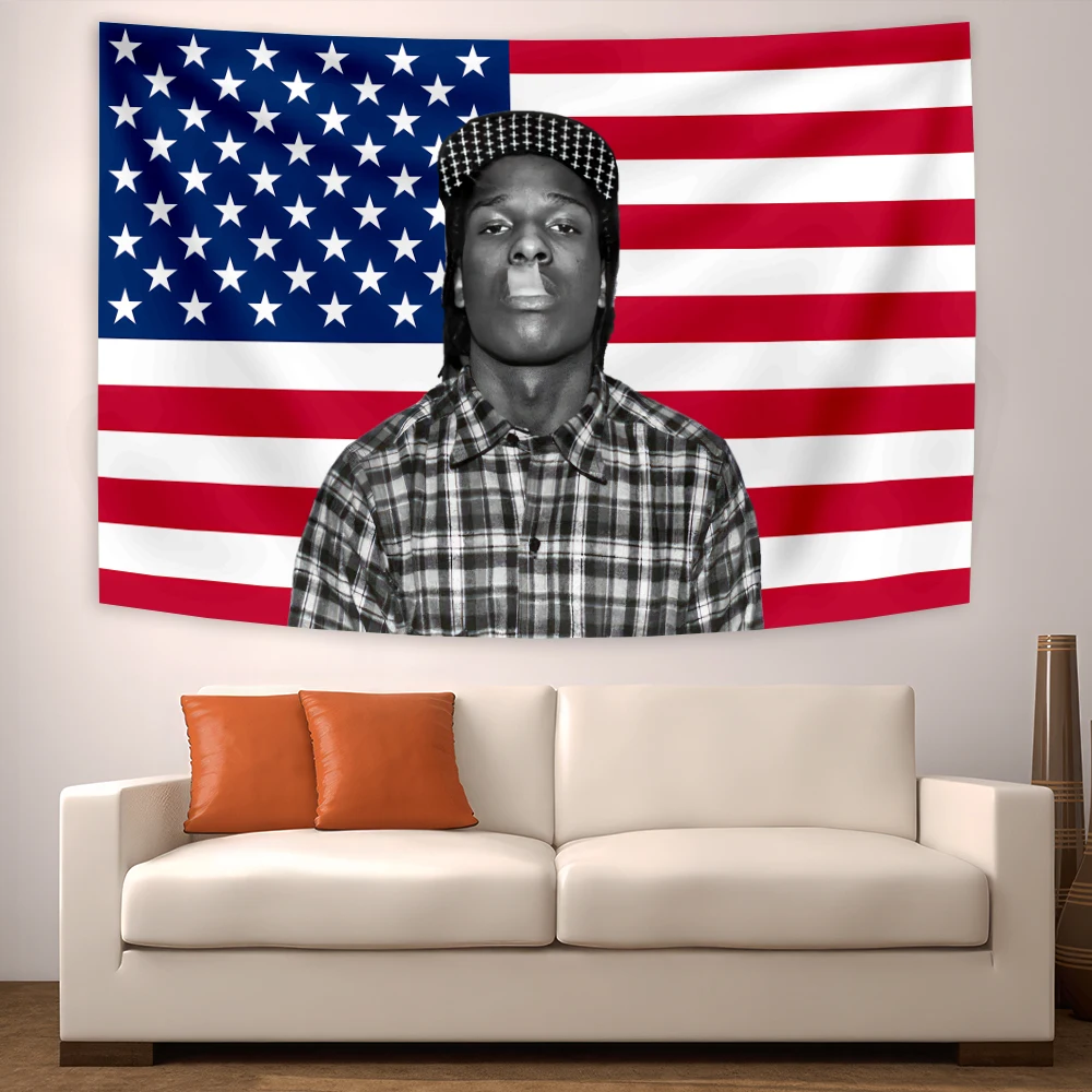 Asap Rockys Flag Rakim Mayers Smoking Wall Hanging Ablum Posters Decor Meme Tapestry Room Decor Aesthetic