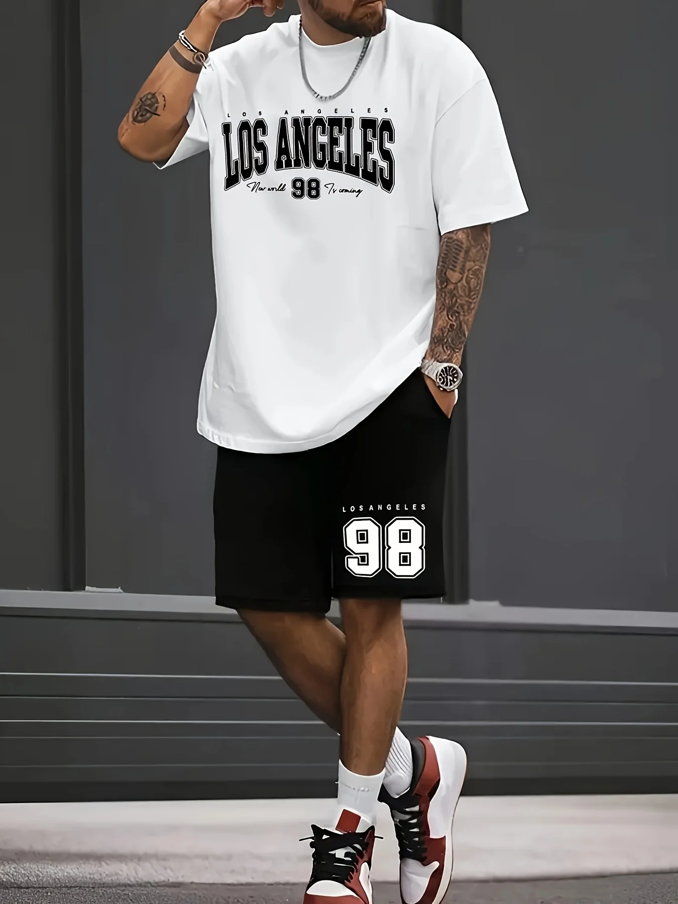aliexpress , ali , shop , ali shop , online , store , online shop , online store , buy , sell , Summer Men's Chicago-Themed Relaxed Set Size 32 Printed T-Shirt and Shorts Set Adult Sports Casual Plus Size Two-Piece Set