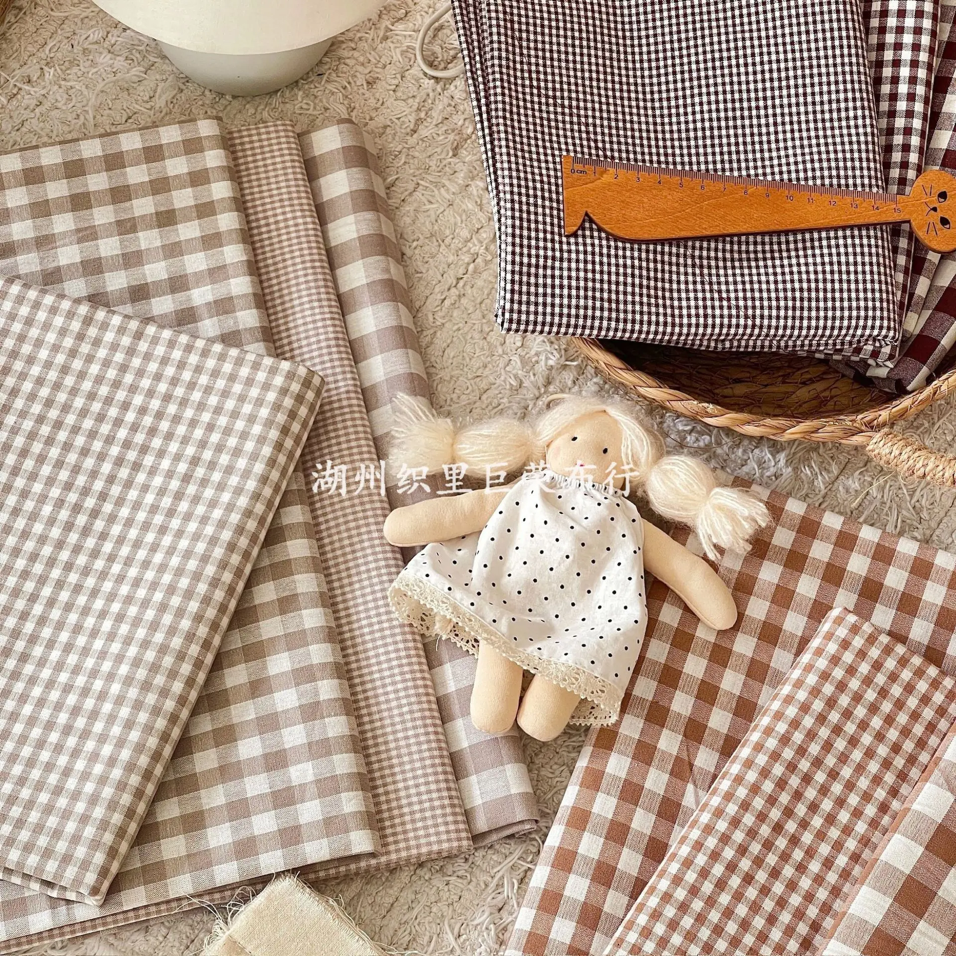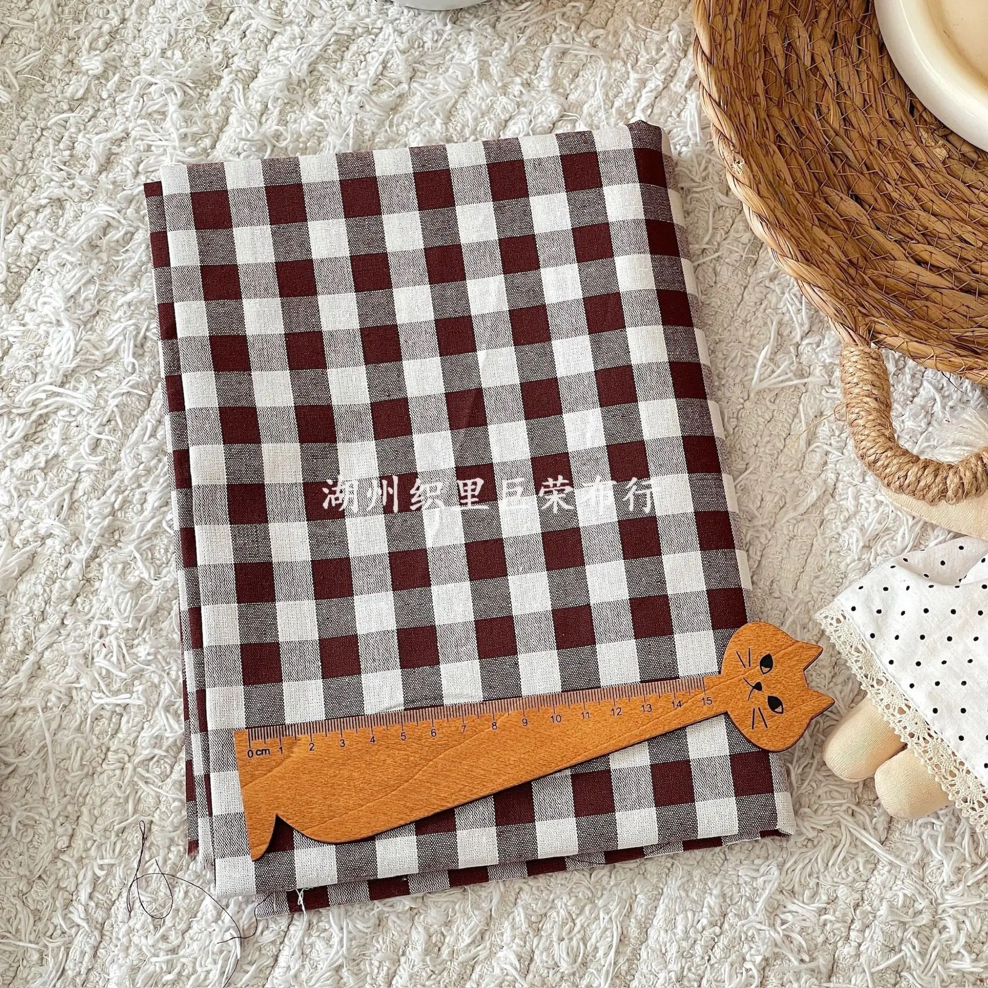 aliexpress , ali , shop , ali shop , online , store , online shop , online store , buy , sell , 145x50cm Coffee Color Cotton Fabric Woven Check Cloth for Women Clothing Bags Hair Accessories Sewing Cloth