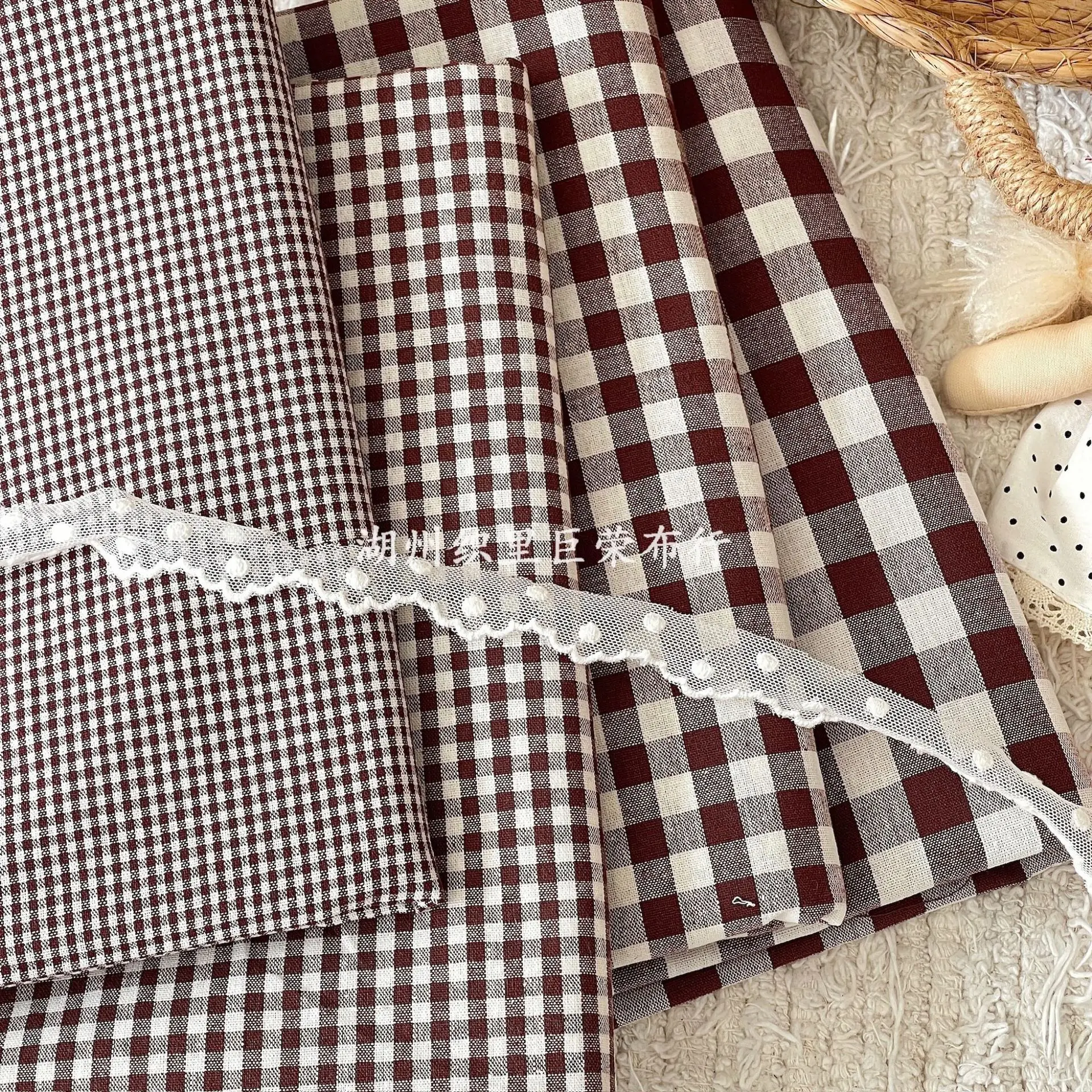 145x50cm Coffee Color Cotton Fabric Woven Check Cloth for Women Clothing Bags Hair Accessories Sewing Cloth