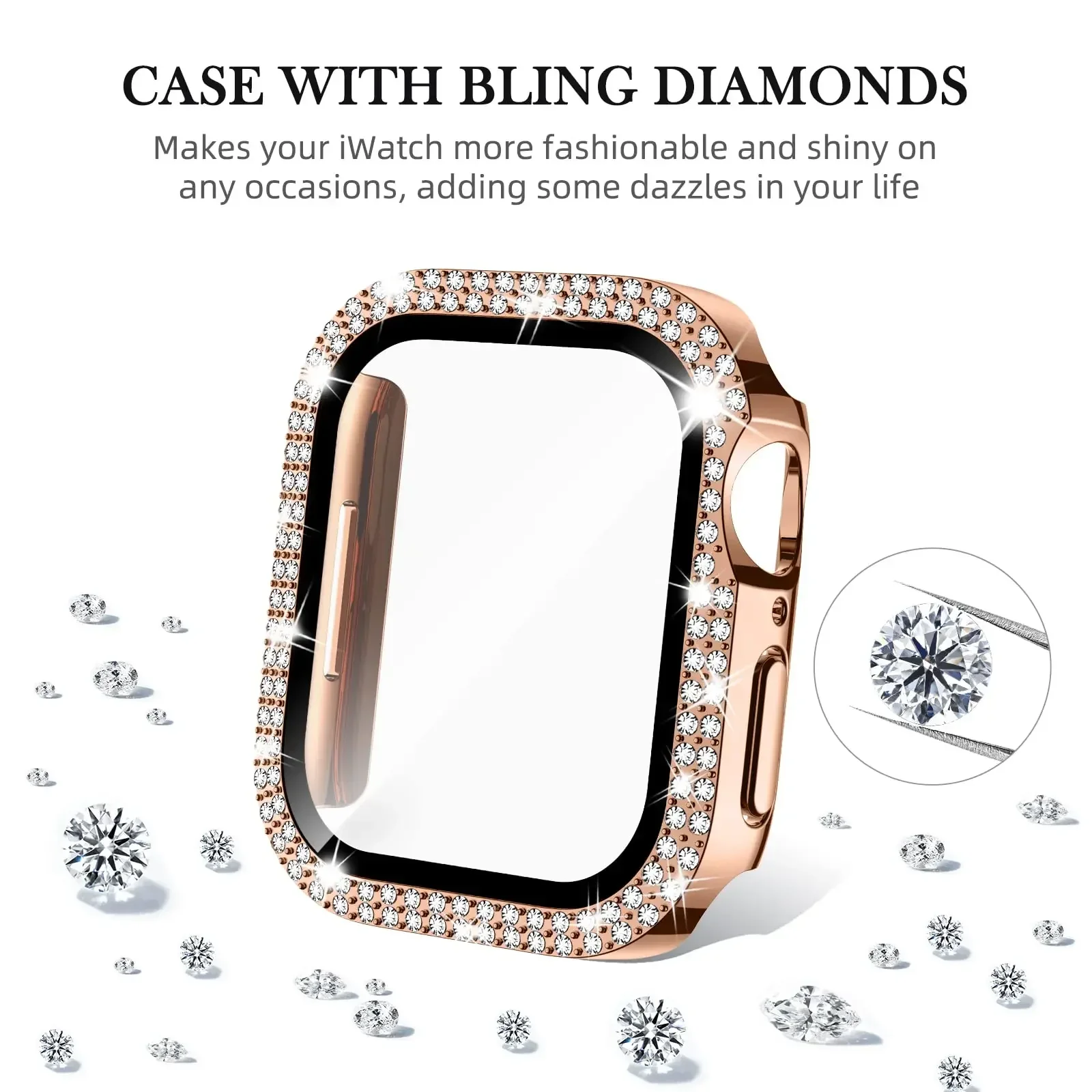 Diamond Cover For Apple watch Case 45mm 41mm 44mm 40mm Tempered Glass+Bling Bumper Screen Protector iWatch series 9 8 7 6 5 4 SE