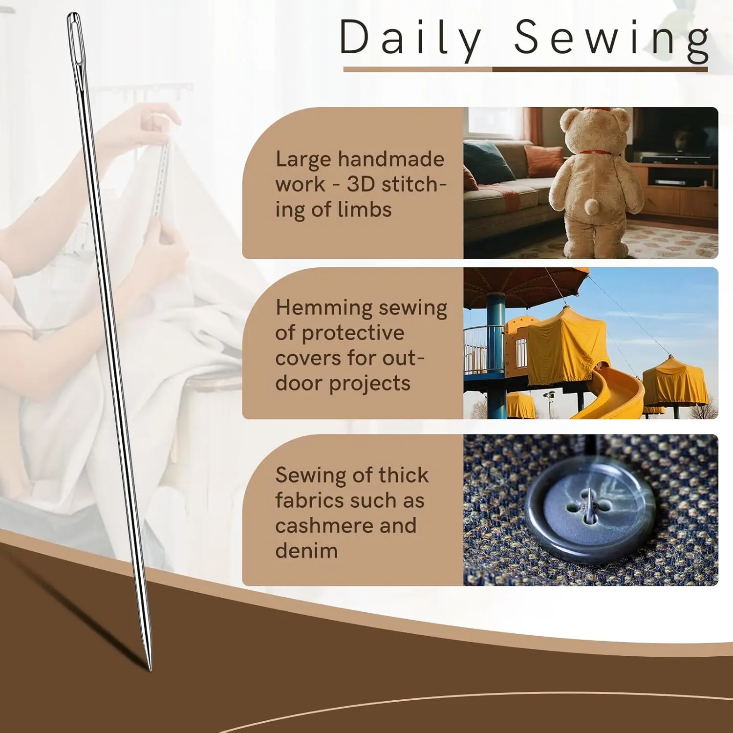Upholstery Needles for Hand Heavy Duty Sewing Needles Long Leather Needles for Denim Canvas Tents Sofas Stitching with Tube