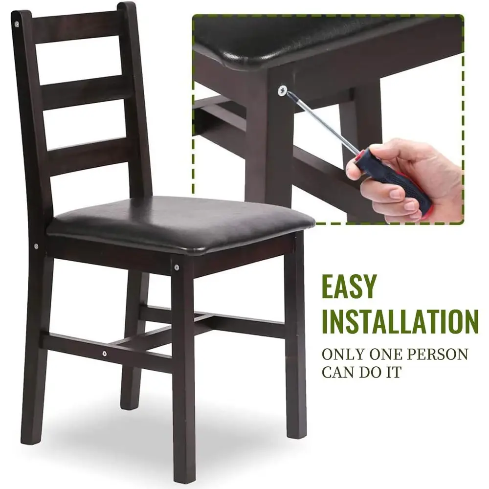Brown Pine Wood 5-Piece Dining Set with Upholstered Chairs for 4, Ideal for Space-Efficient Dining in Rooms, Apartments, and Res