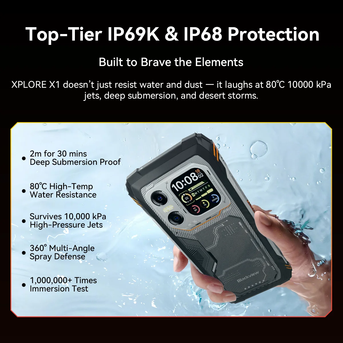 Blackview XPLORE X1 Rugged SmartPhone, 6.78'' 2.4K 120Hz Display, Dimensity 7050,10000mAh Battery 55W Charging,108MP+50MP Camera