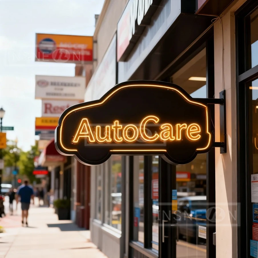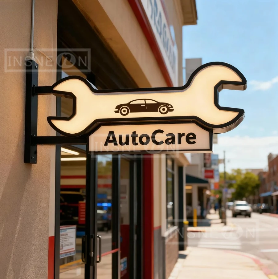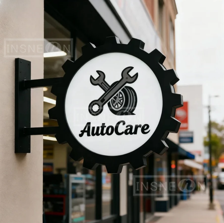 AutoCare Sign Double Sided Lighted Circle LED Signboard Signboard Advertising Store Front Blade Exterior Wall Mounted Light Box