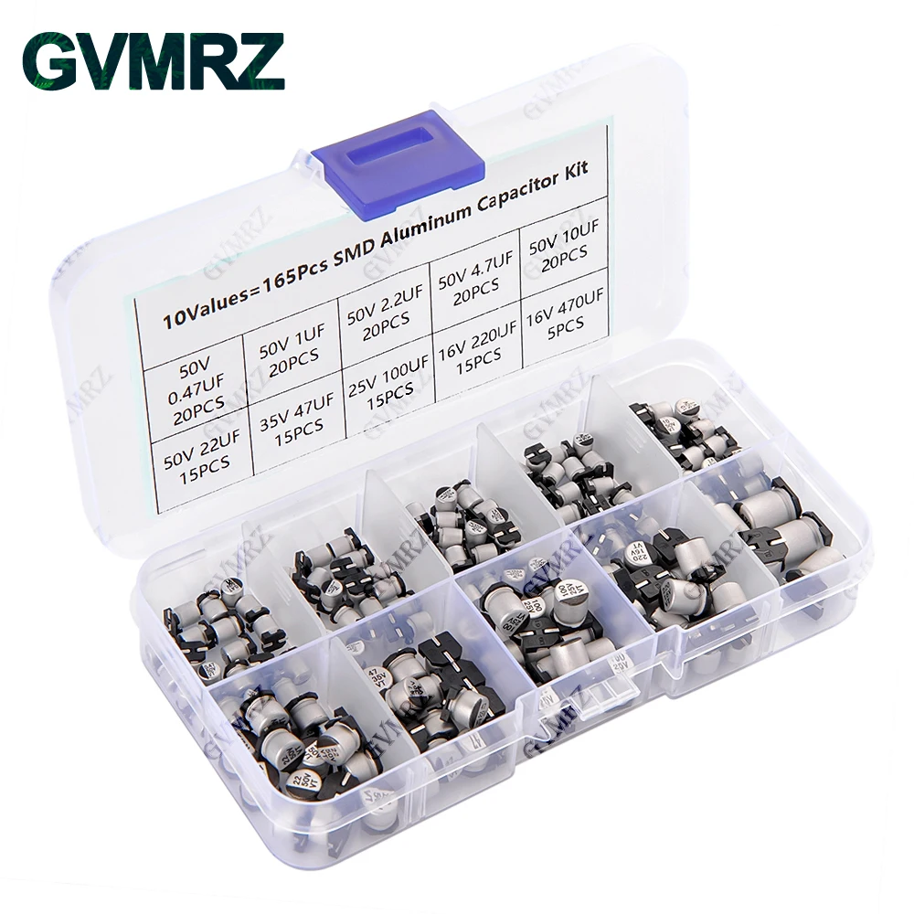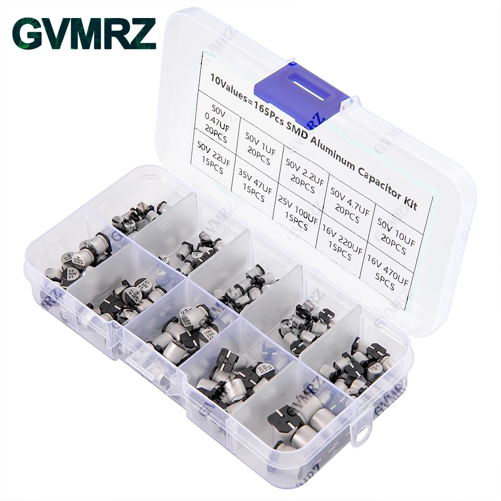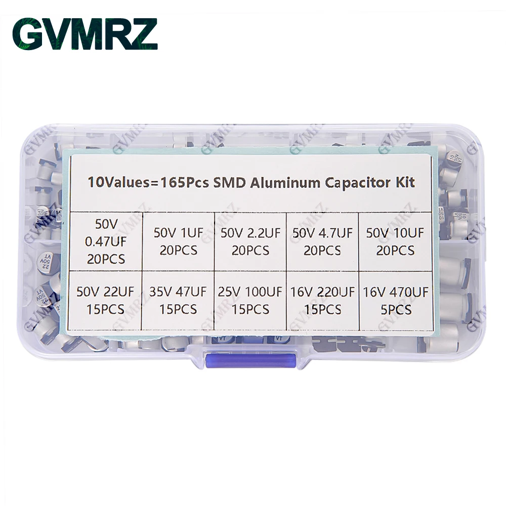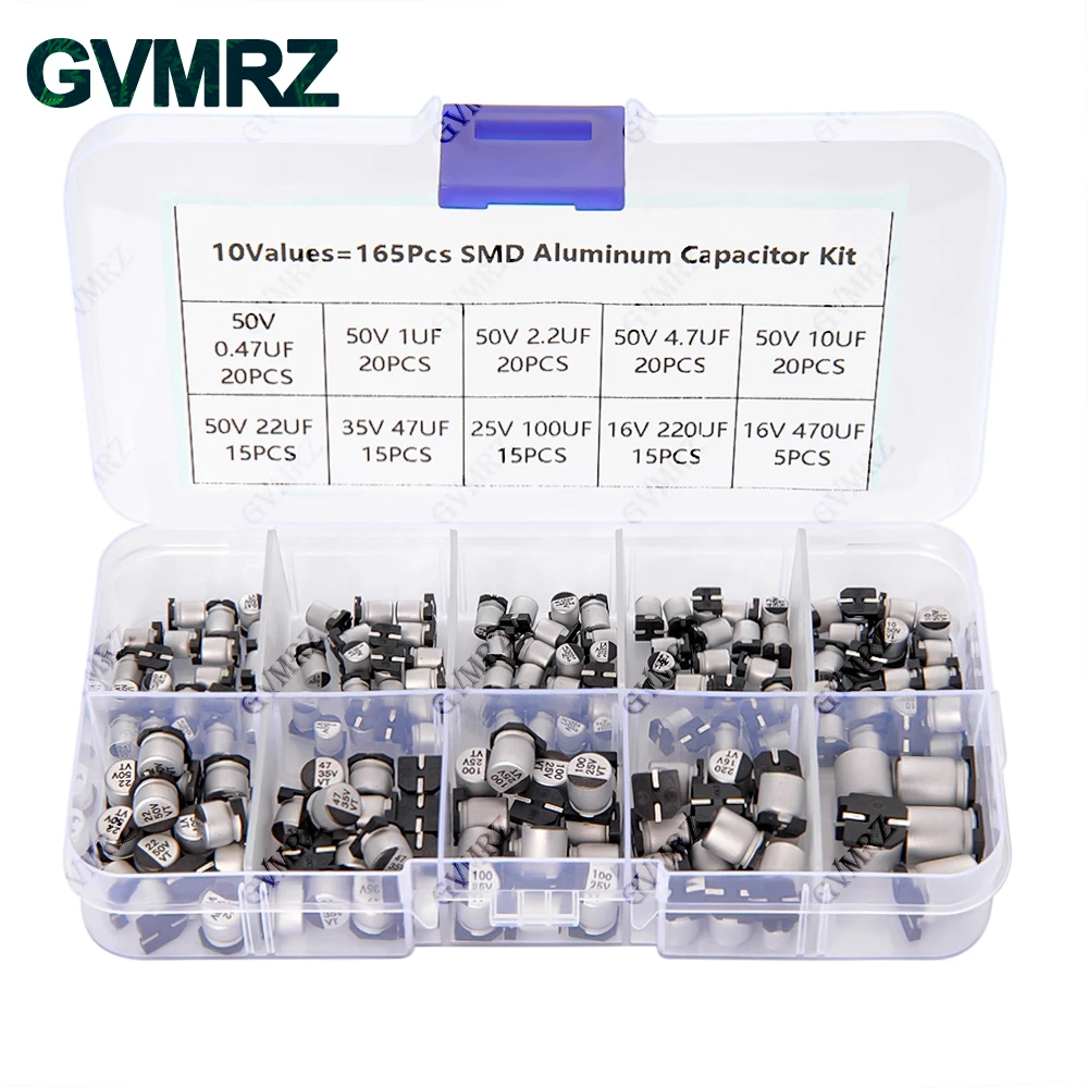 165PCS 10Values SMD Aluminum Electrolytic Capacitor Sample Box - Assorted Kit for Electronics DIY Repair Projects