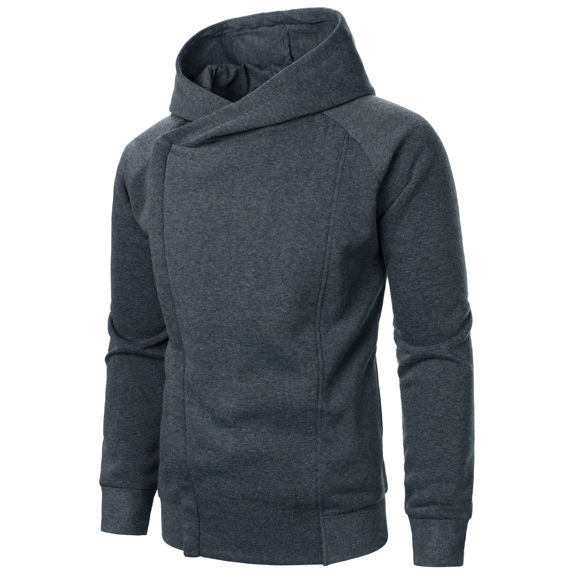 Autumn winter men's solid color hooded top Long sleeve side zipper design hoodie