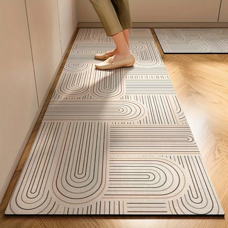Diatom Mud Material Nordic Style Kitchen Mat - Modern Floral Design, Rubber Backed, Easy-to-Clean Rectangular Mat for Home Decor