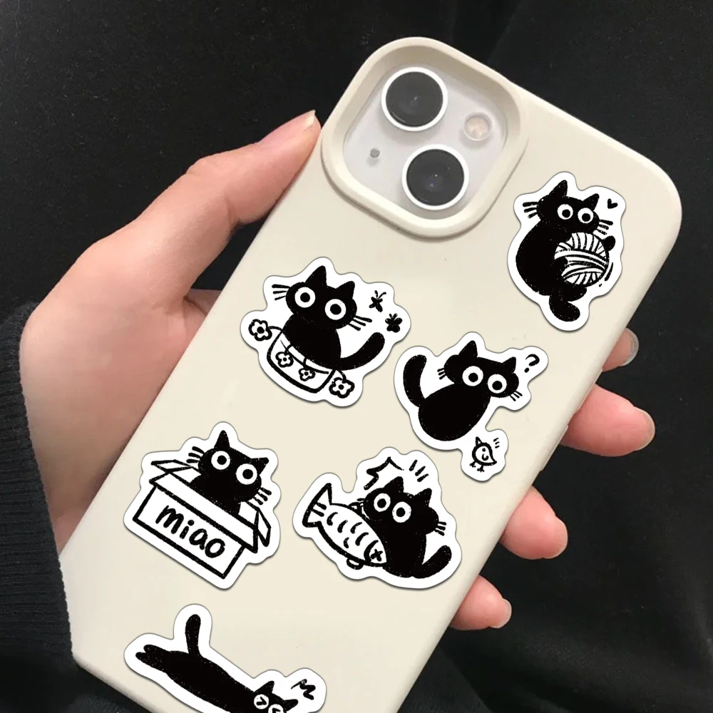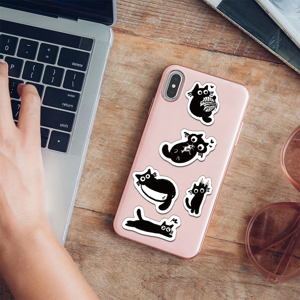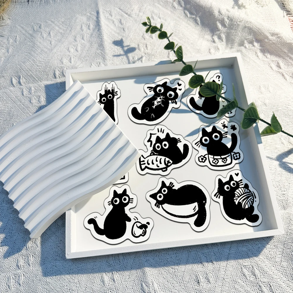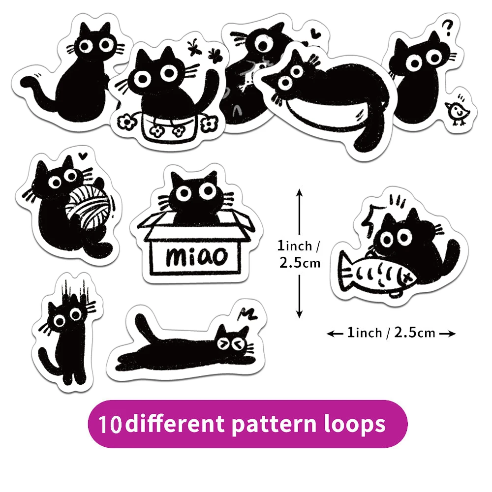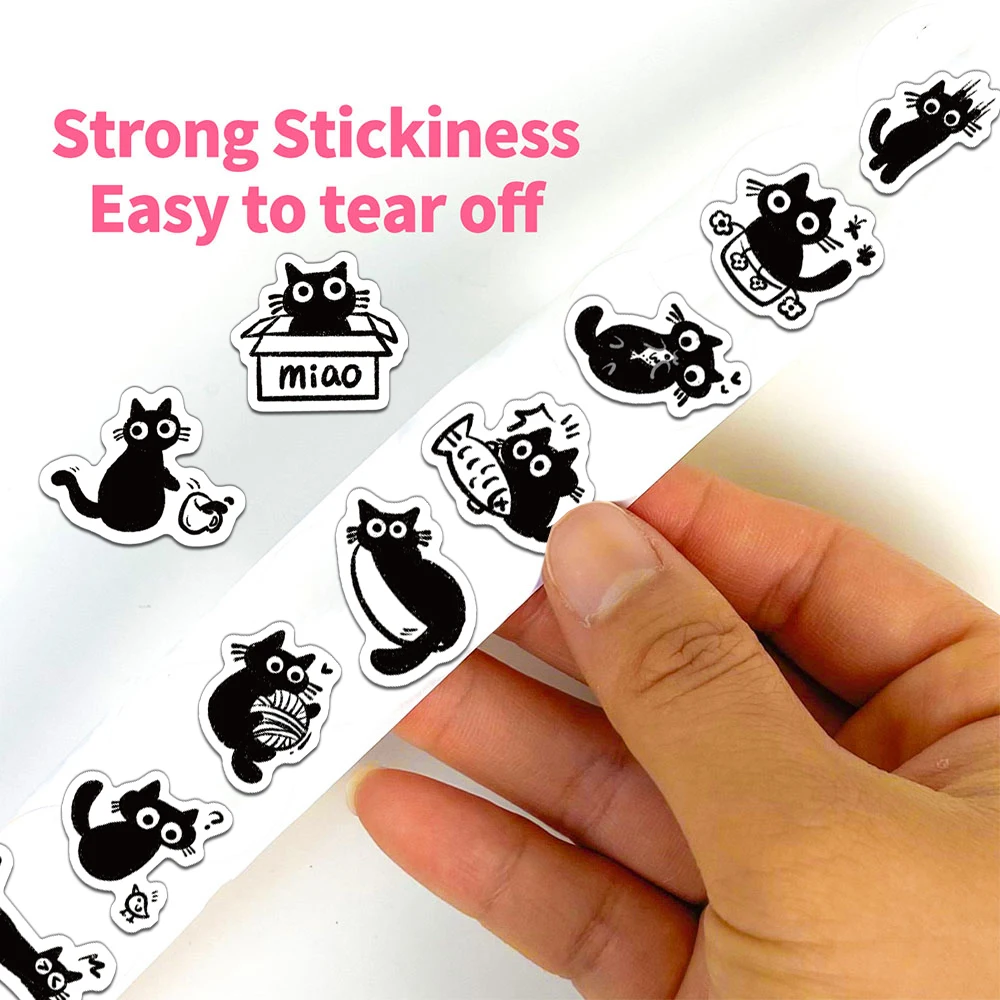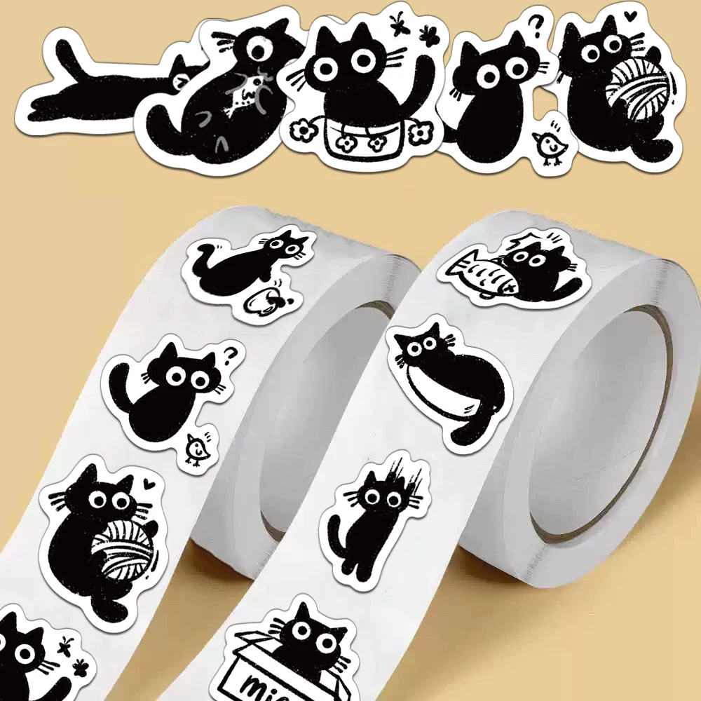 500PCS Creative Little Black Cat Cute Cartoon Roll Stickers Decorative Water Cup Notebook DIY Personalized Stickers