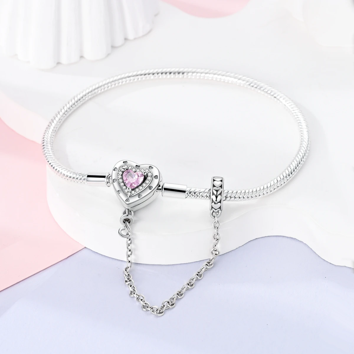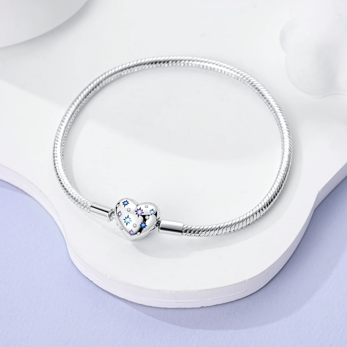 New Charm Bracelet 925 Silver Heart Shape Holy Mother Snake Chain Clasp Bracelet Fit Original Bead DIY Fashion Jewelry