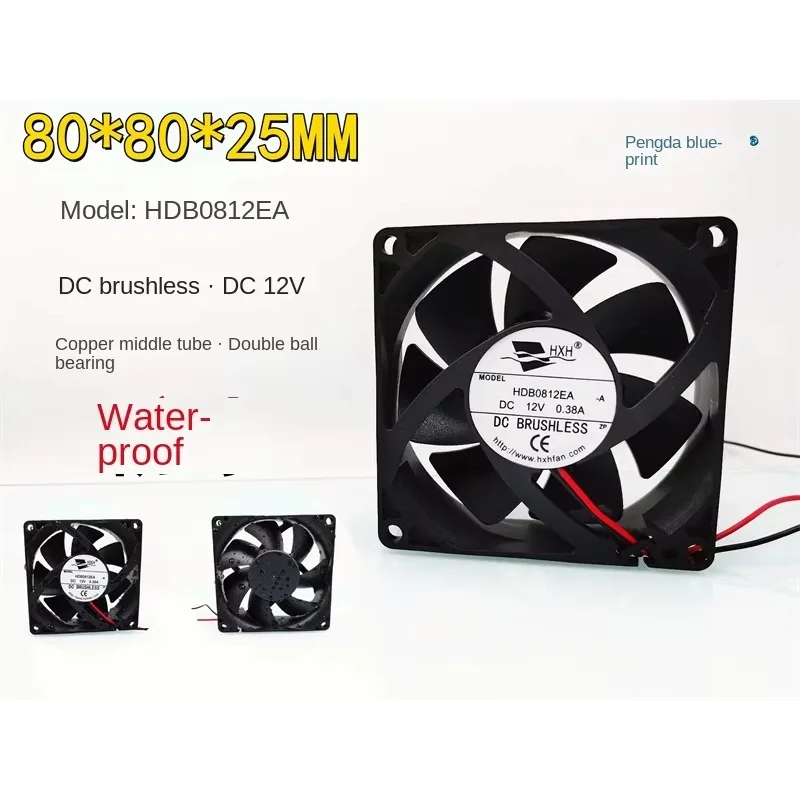 pa New HXH HDB0812EA double ball bearing 8025 waterproof 12V high rotation 8CM chassis cooling fan80*80*25MM