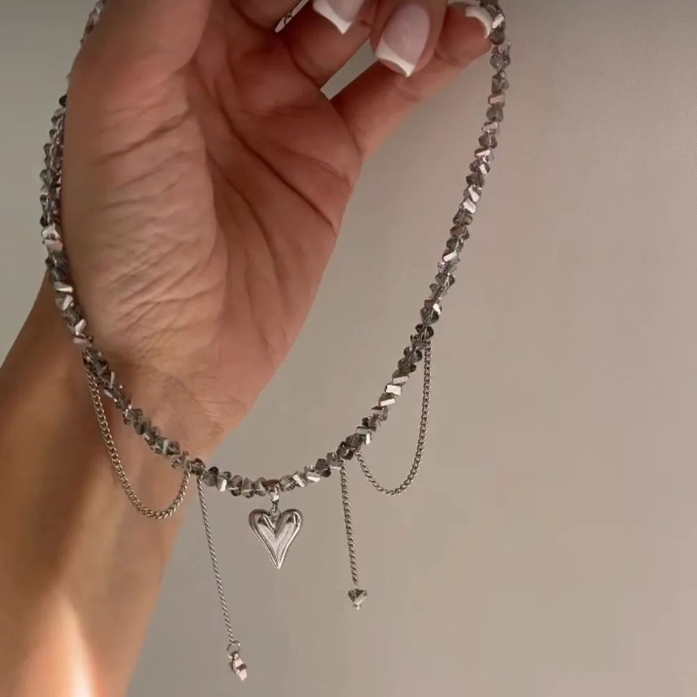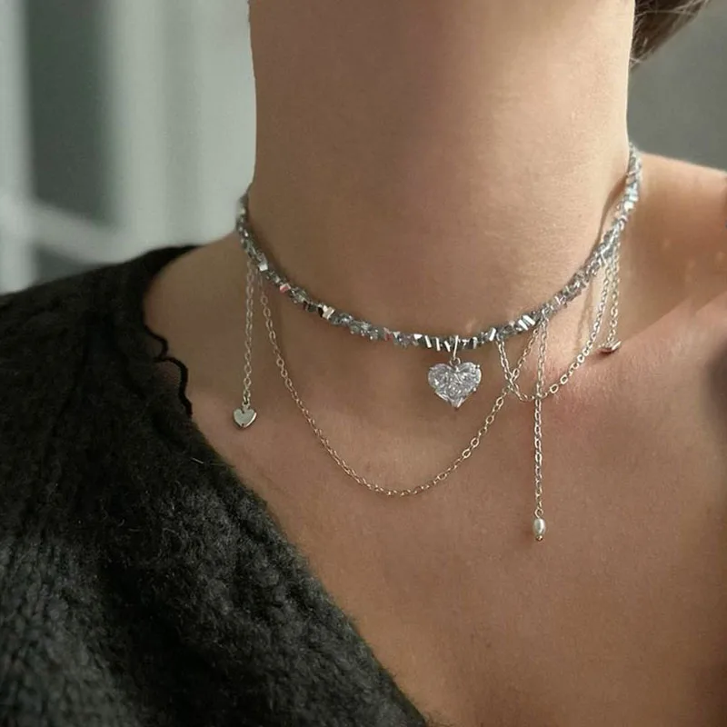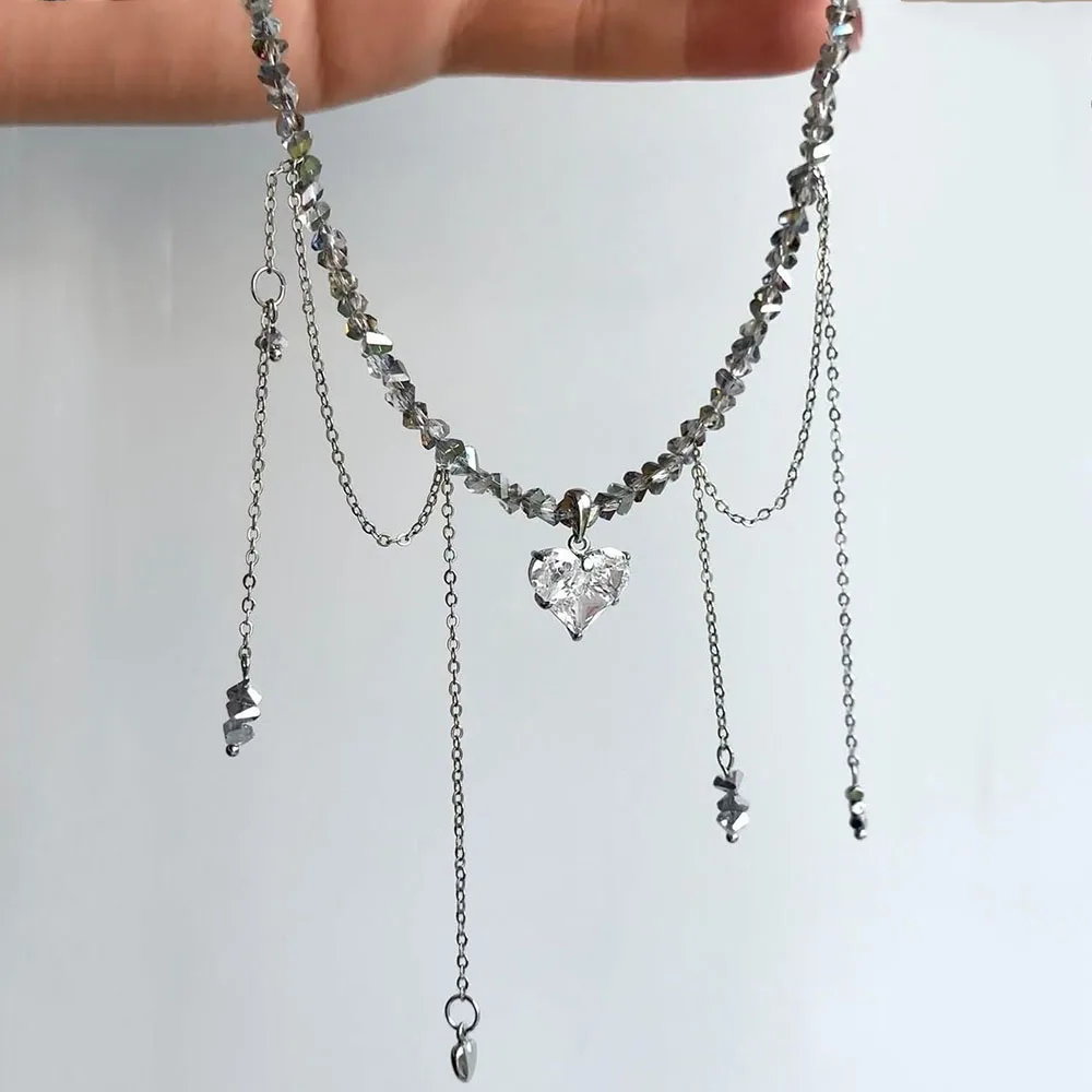 Boho Geometric Transparent Crystal Jewelry Fashion Vintage Zircon Heart Pendant Tassel Necklace For Women Neelry
