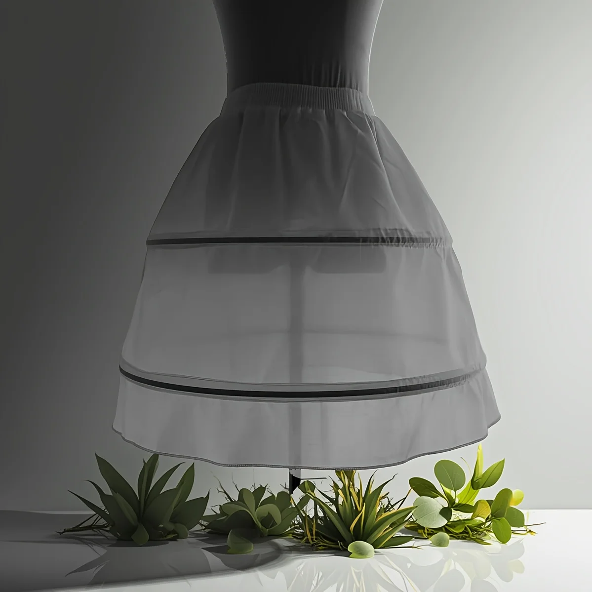 Girls Crinoline Petticoat 2 hoops Under skirt Short White Underskirt A-line Ball Gown Petticoats with Elastic Waist
