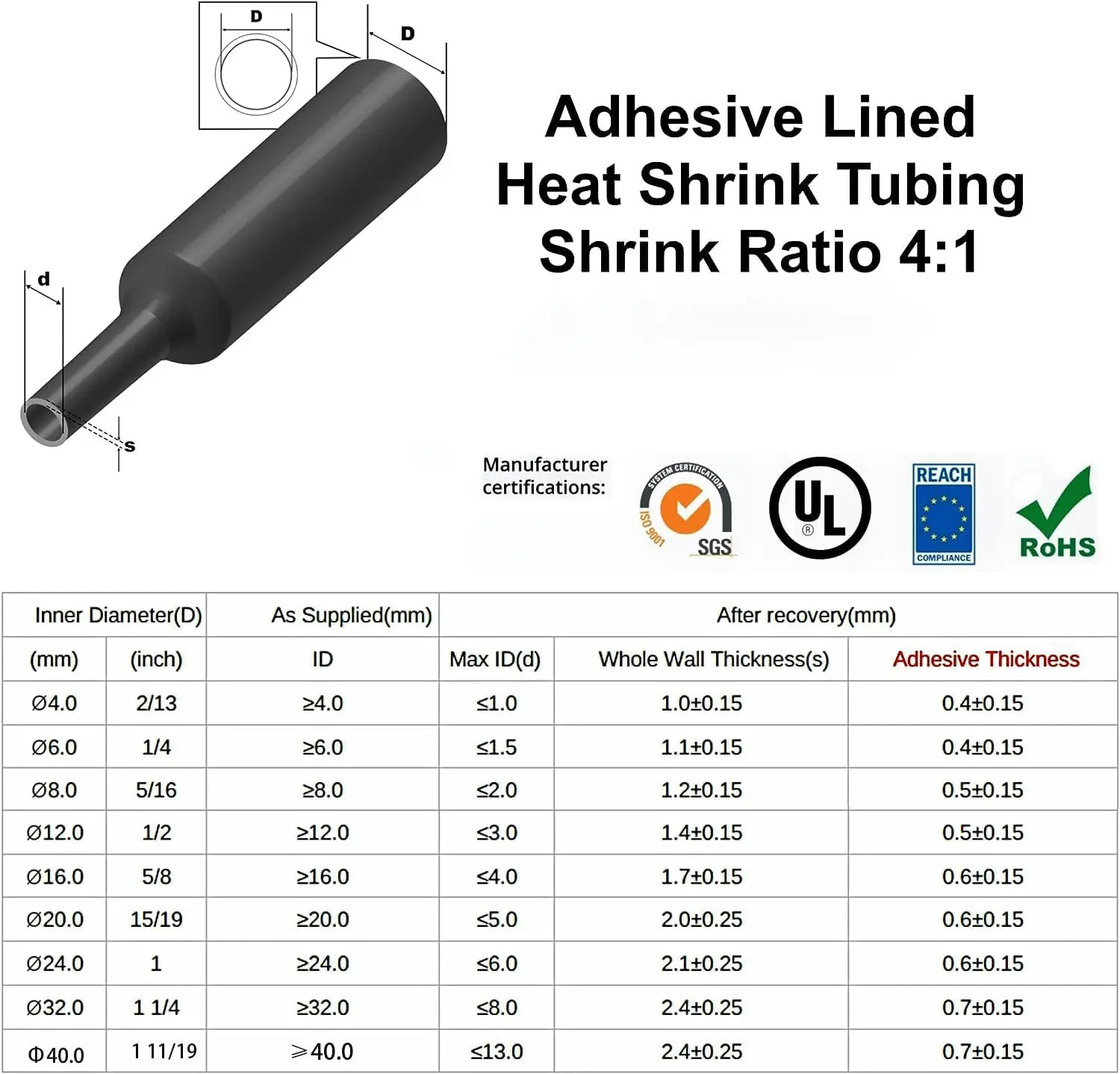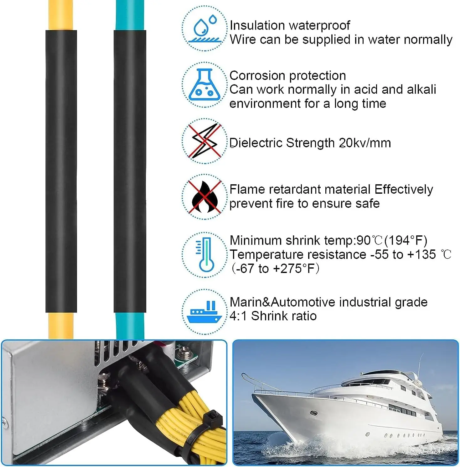 Heat Shrink Tubing 4:1 Dual Wall Adhesive Lined 2M Long,Marine Grade Heat Shrink,Wire Heat Shrink Tubing Insulation Seal Against