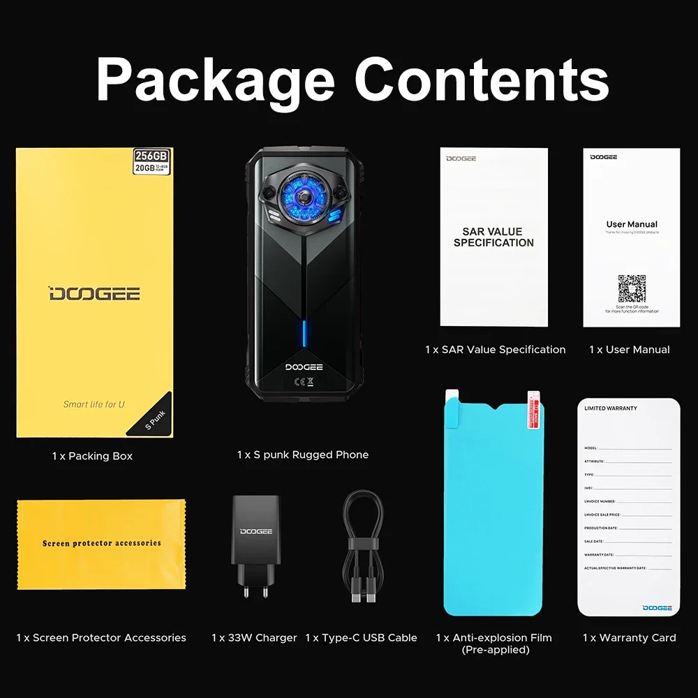 Global version DOOGEE S Punk Rugged Smartphone Android 14 6.58'' FHD+90Hz IPS Screen 16GB(6+10)+ 256GB 10800mAh 50MP Mobile Phone