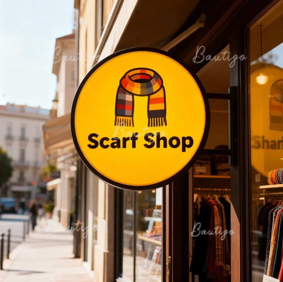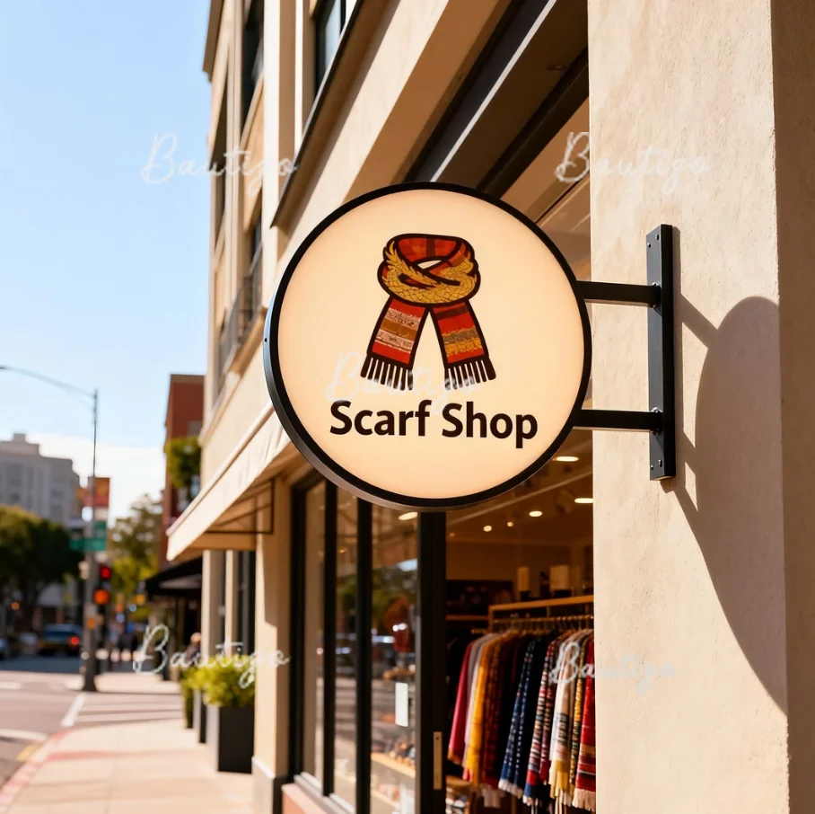 Custom Double Sided LED Scarf Shop Sign Logo Wall Company Exterior Box Sign Mounted Round Light Advertising Illuminated Lightbox