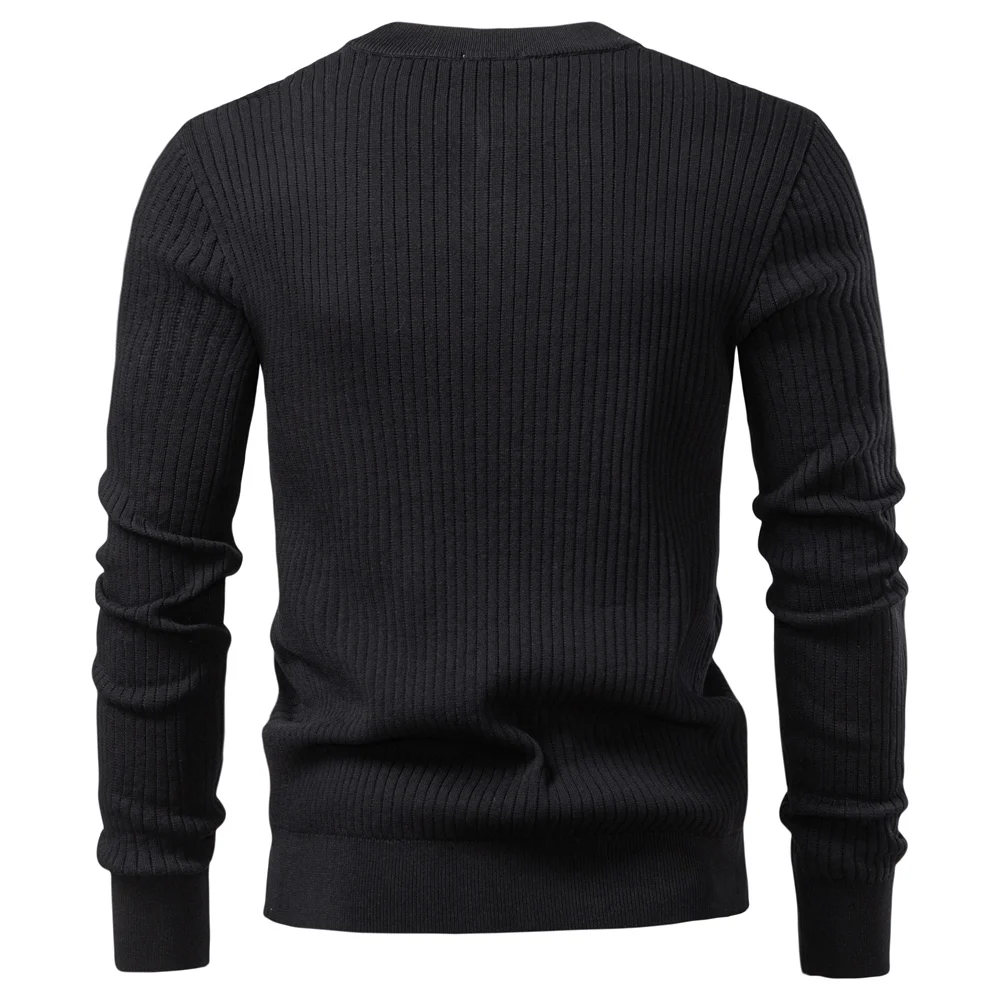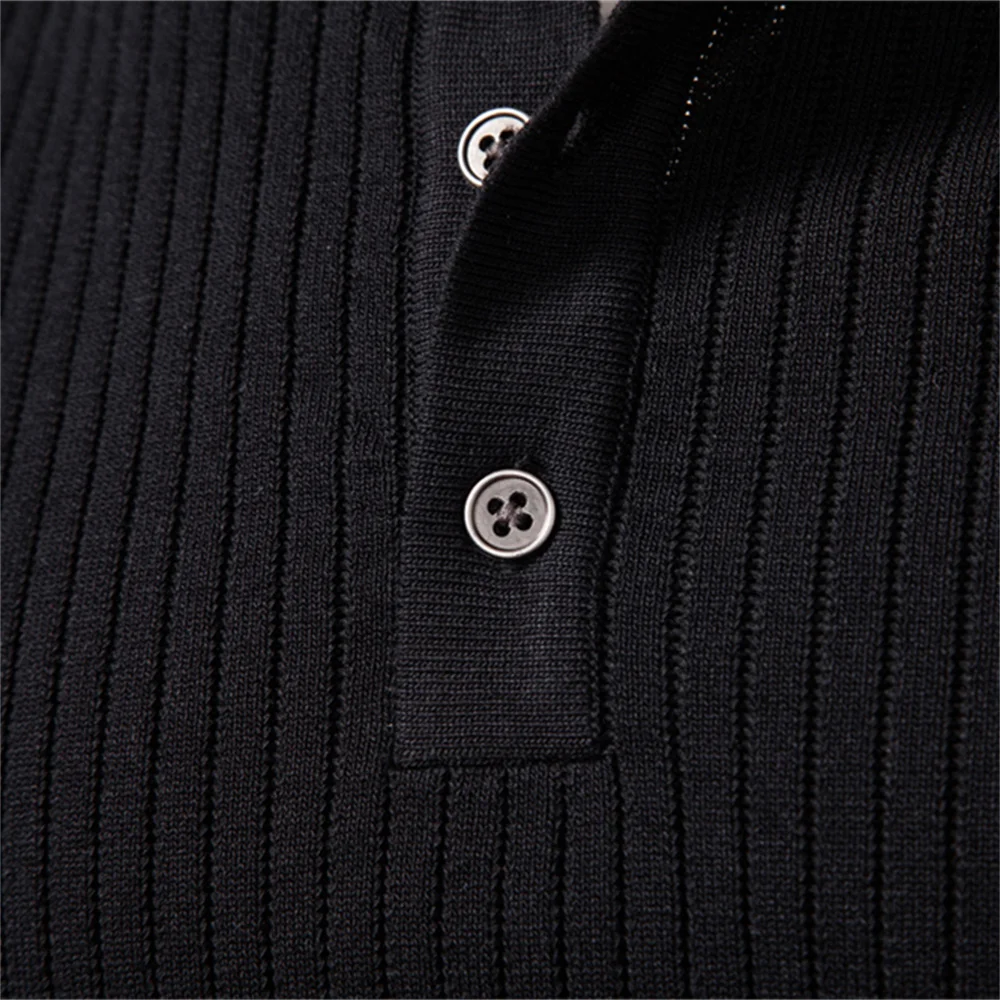 AIOPESON Button Placket Polo Shirt Men Ribbed Stripe Long Sleeve Contemporary Fit Minimalist Autumn Winter Premium Business Top