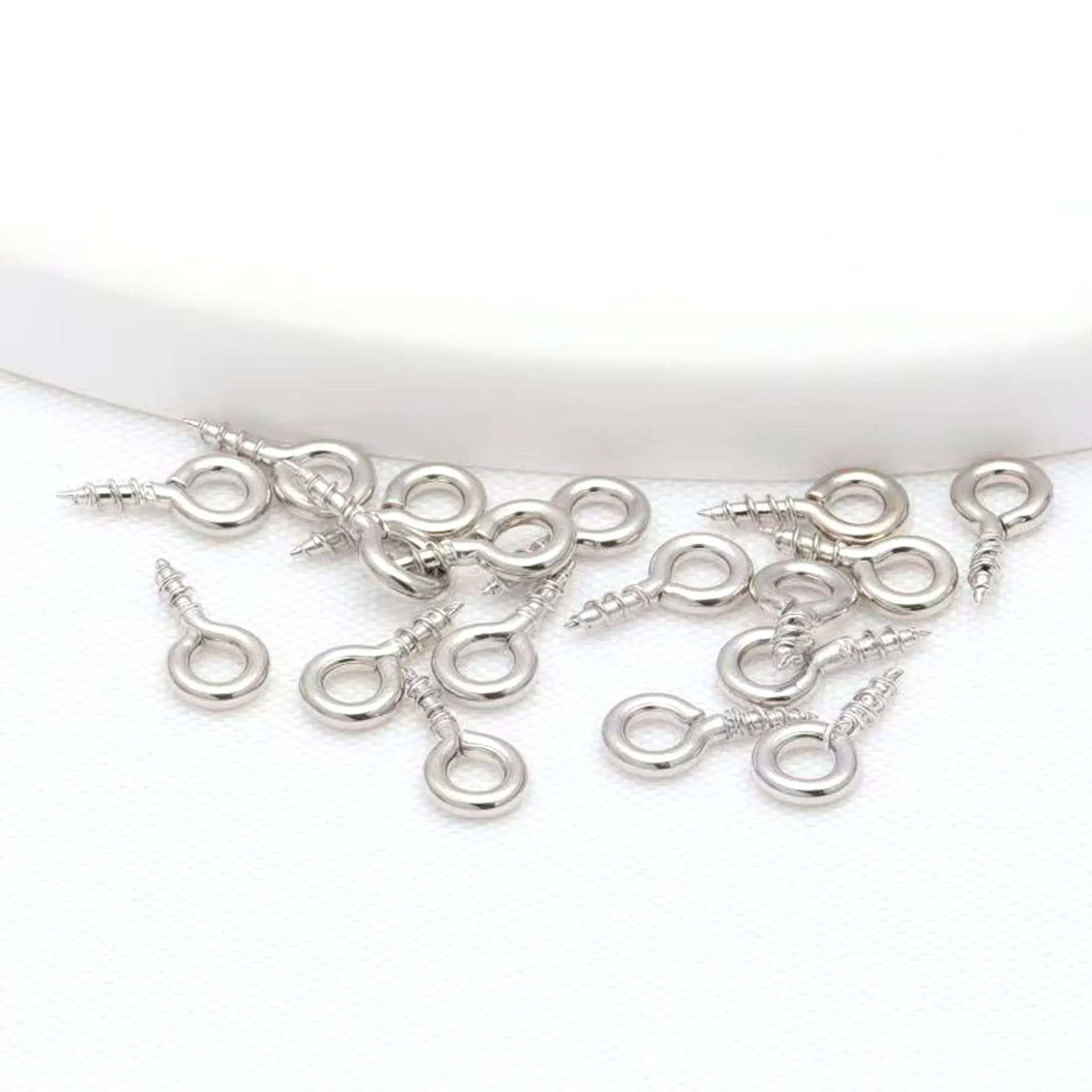100pcs Mini Screw Eye Pin Pegs 8 x 4mm Hooks Self-Tapping Screws for Arts & Crafts Cork Top Bottles DIY Jewelry Making